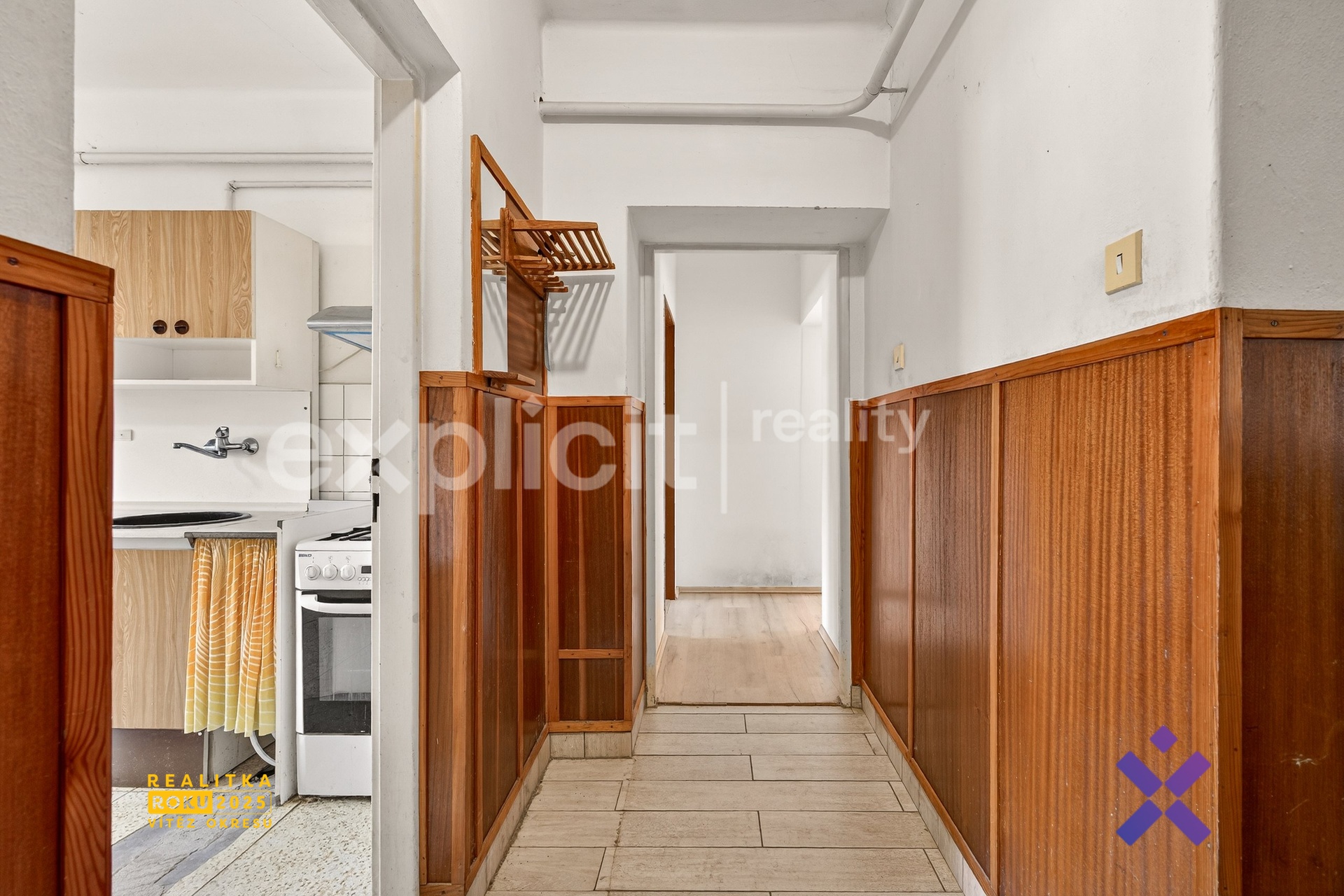 Po levé straně chodby se nachází vstup do hlavní části domu. Po vstupu do domu je po levé straně místnost, která byla dosud využívána jako kuchyně.