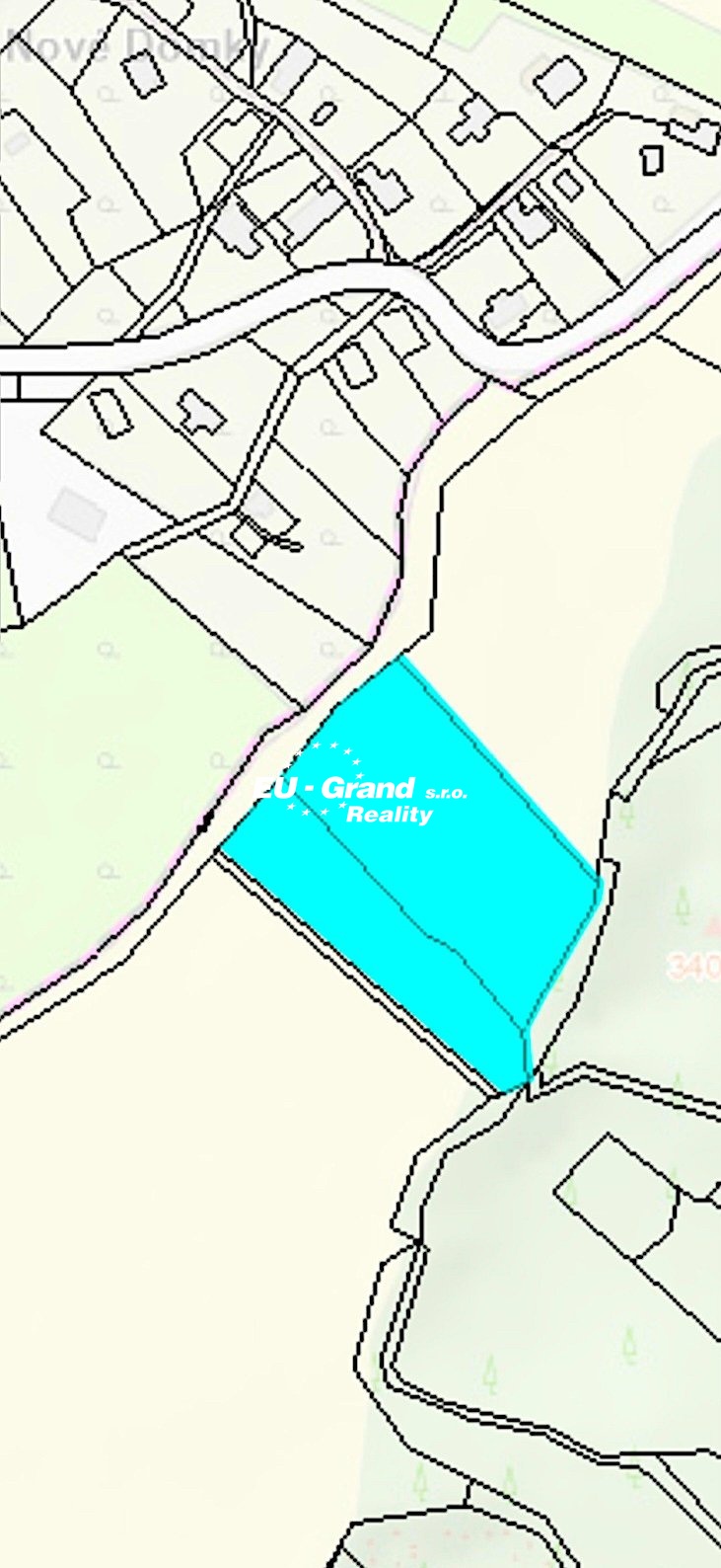 4.843 m² – vedený v územním plánu jako stavební pozemek