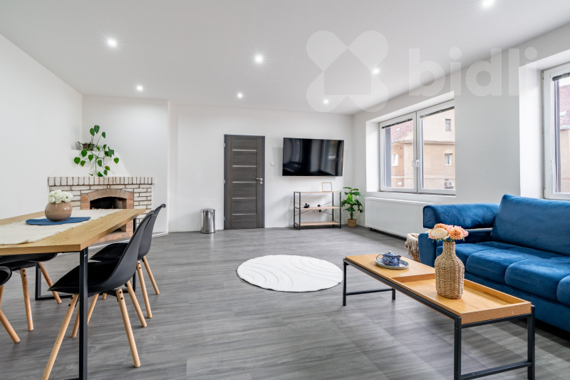 Horní byt (3+1) je po rekonstrukci a připravený k okamžitému nastěhování (viz. fotografie, nejedná se o vizualizace). Světlý a prostorný - ideální jako hlavní rodinné zázemí. Nová kuchyňská linka a koupelna.
