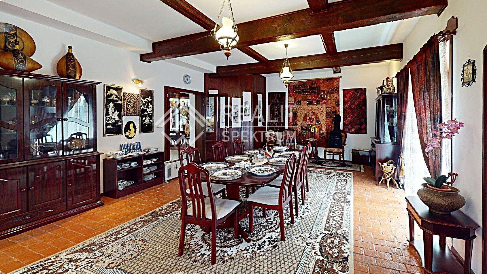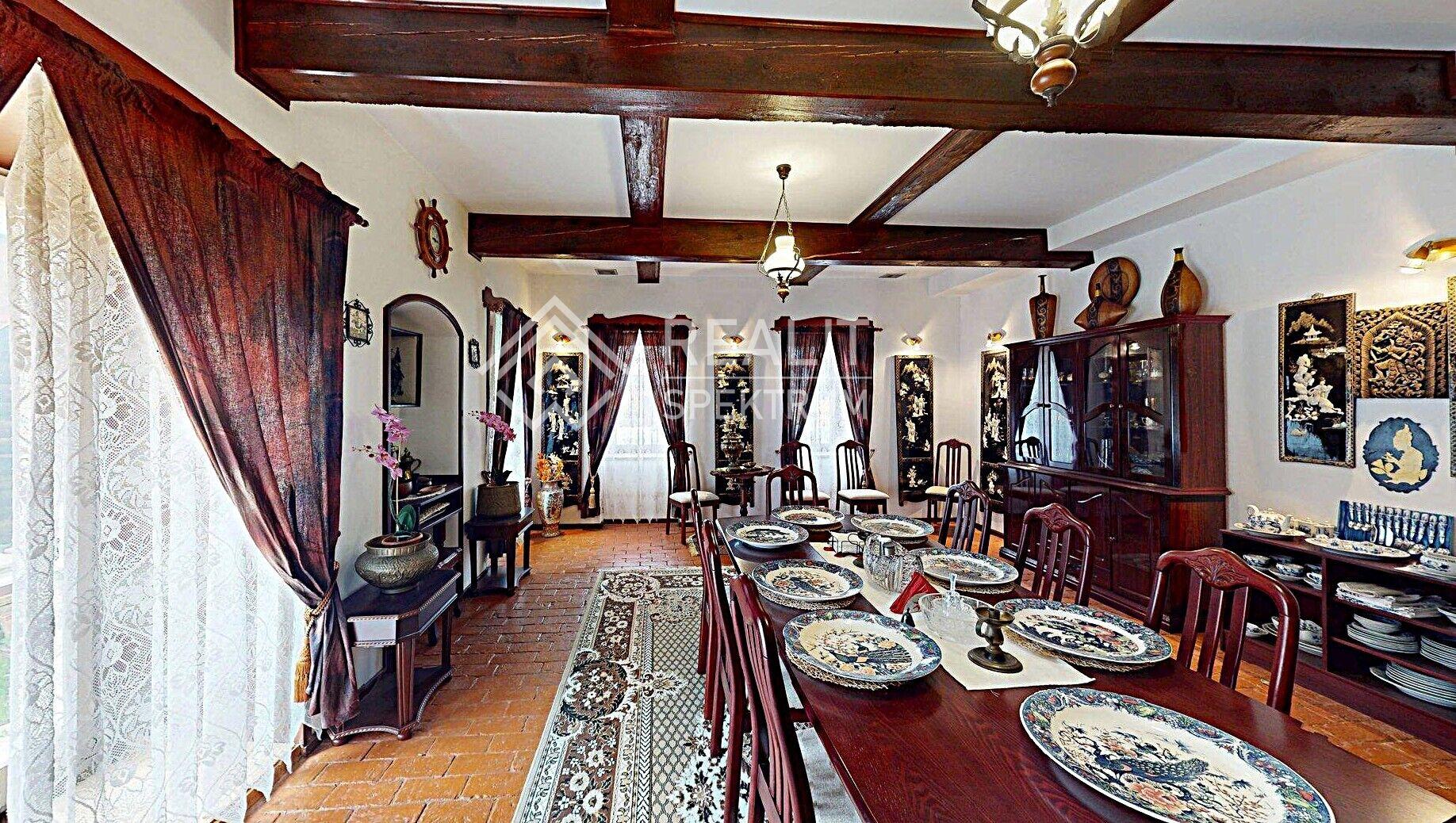 • Historické detaily: Masivní parkety, orientální koberce a celodřevěná okna zachovávající původní ráz.