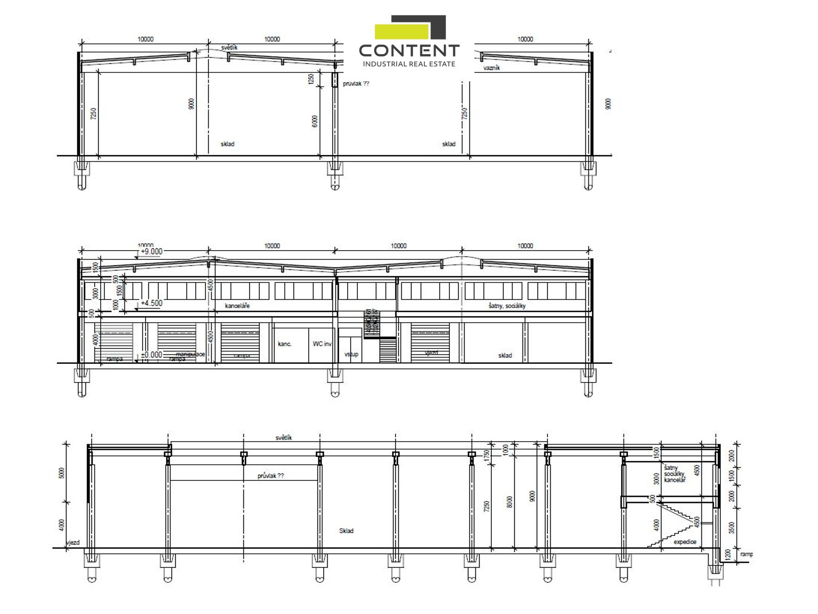 - hala 10000 m² k výstavbě, lze pronajmout od 5000 m²