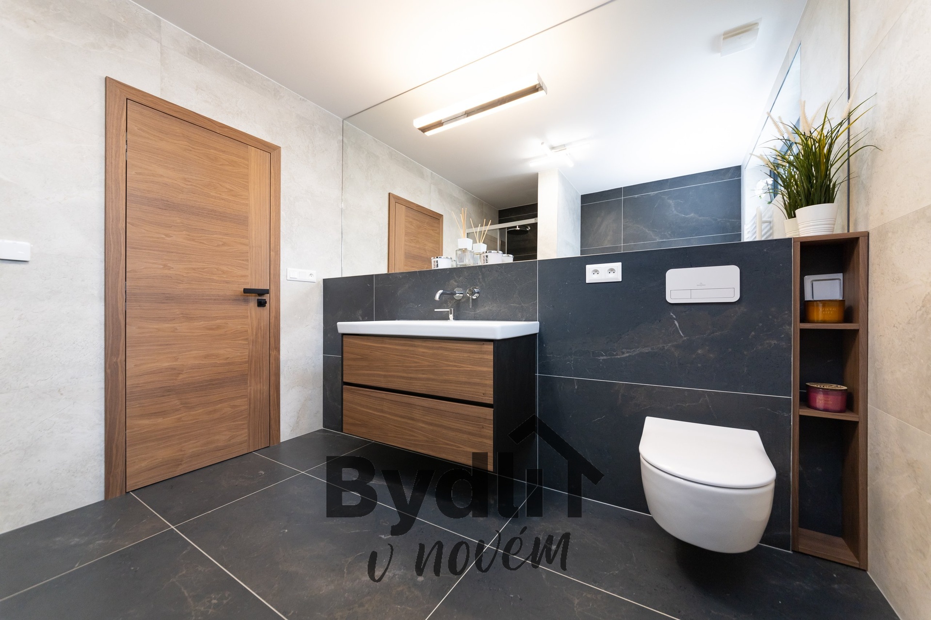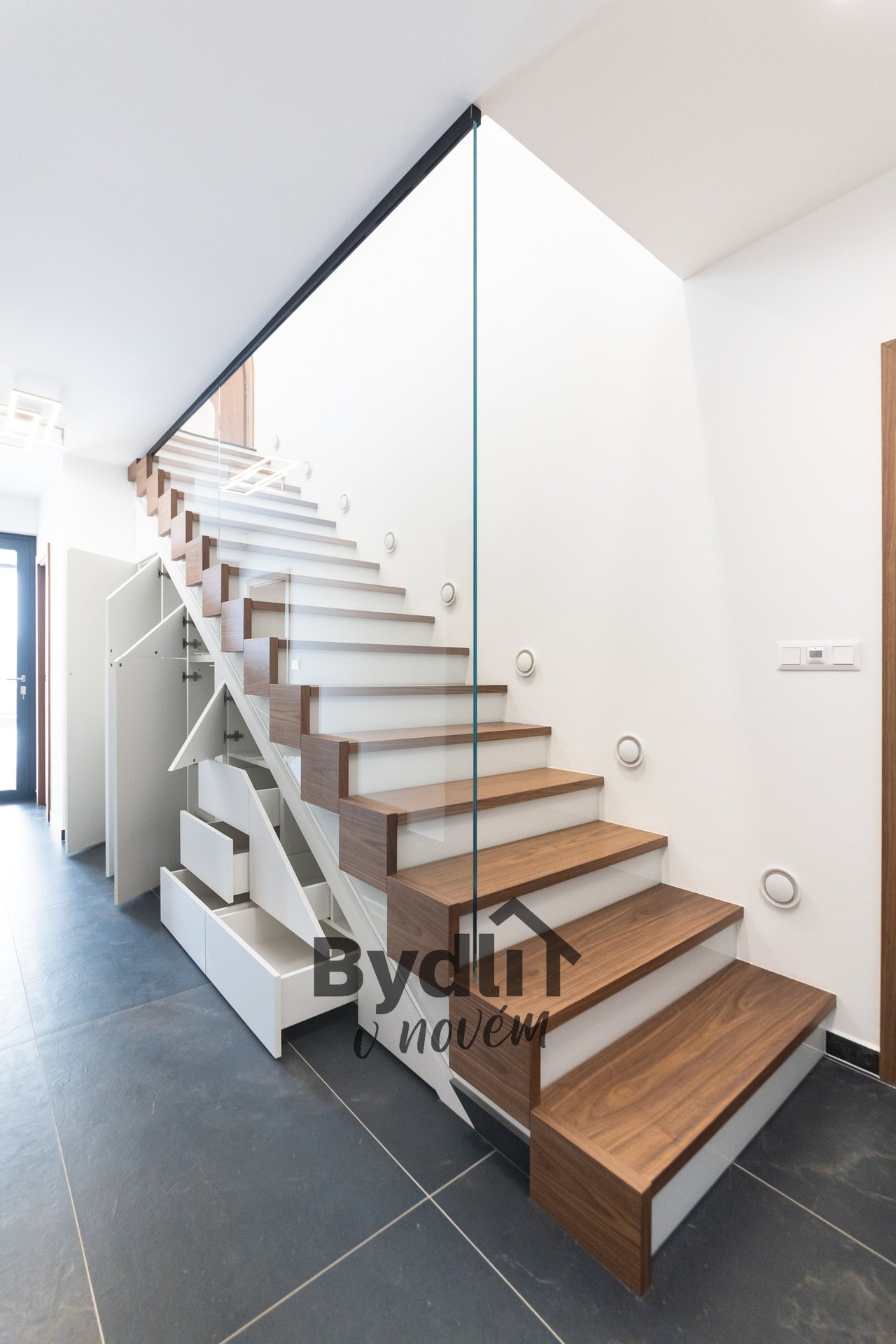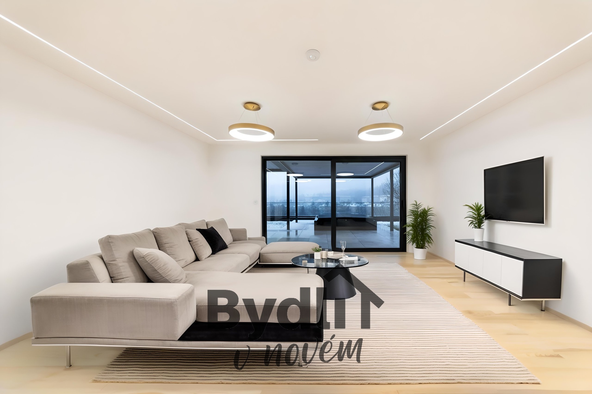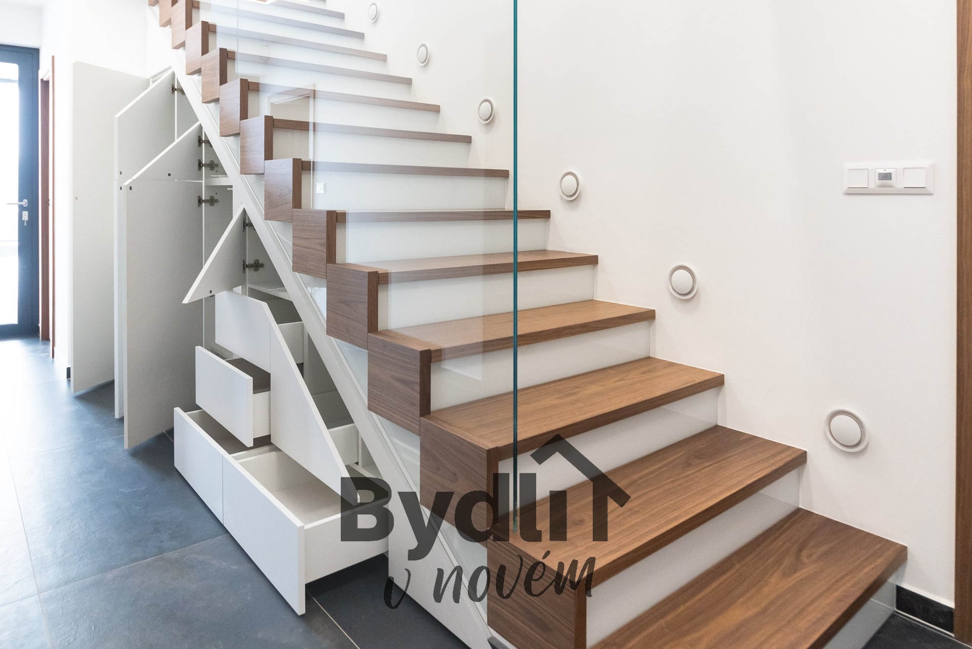 Podlahové vytápění s individuálním řízením pro každou místnost, prostorná šatna, dvě designové toalety, dostatek úložných prostor.