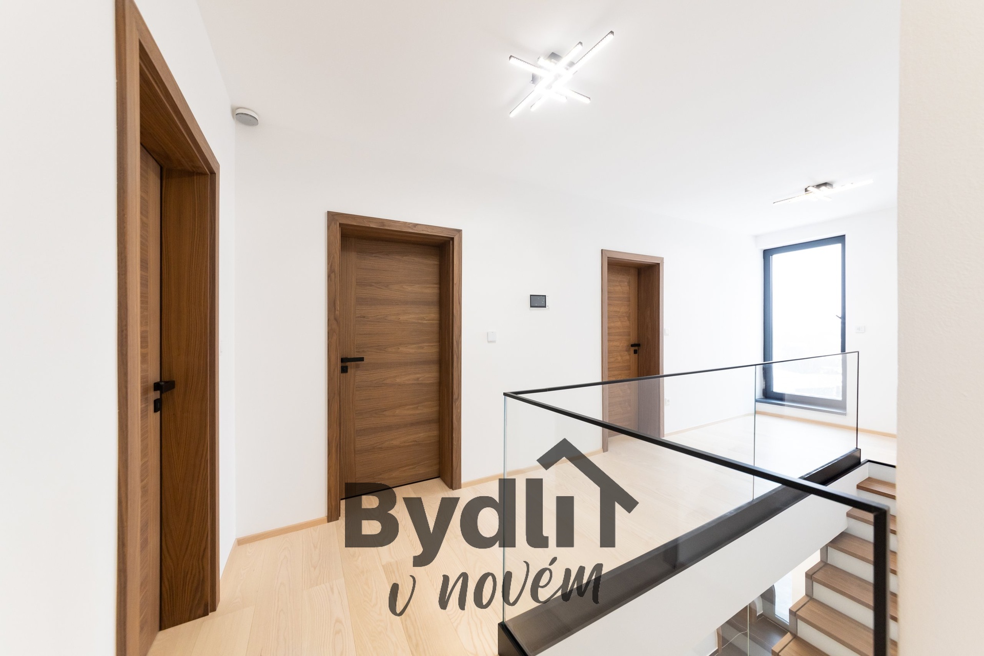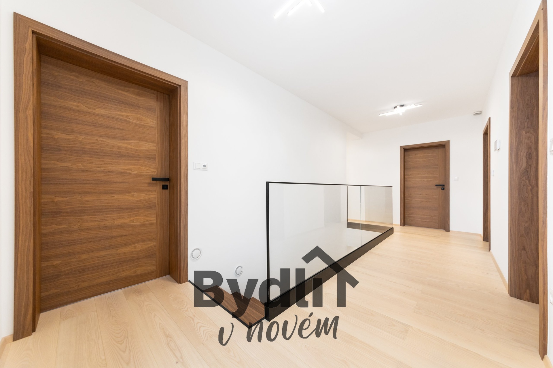 Masivní dřevěné podlahy, velkoformátové designové dlažby, koupelny na míru z prémiového studia, skleněné zábradlí v interiéru pro pocit vzdušnosti a světla.