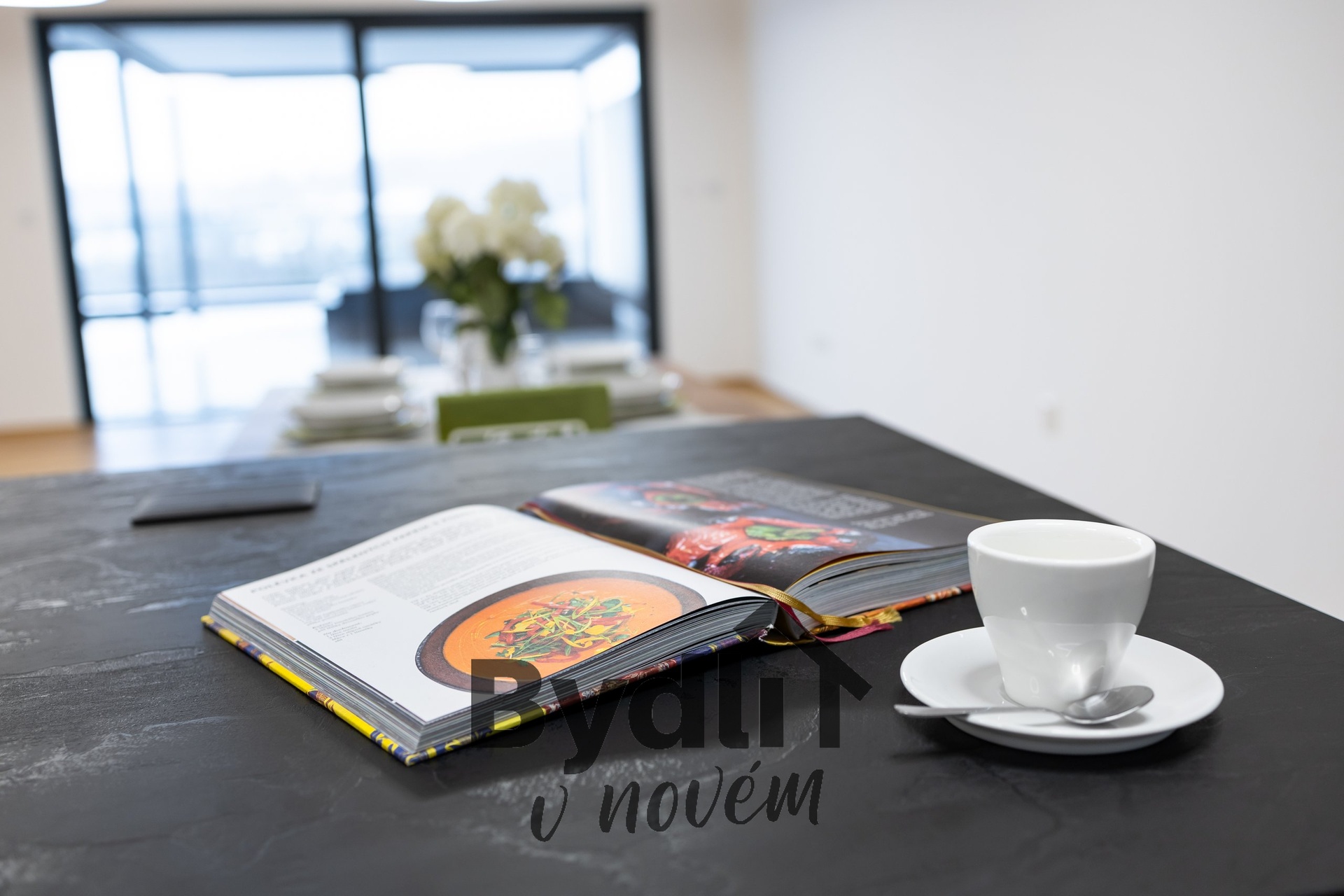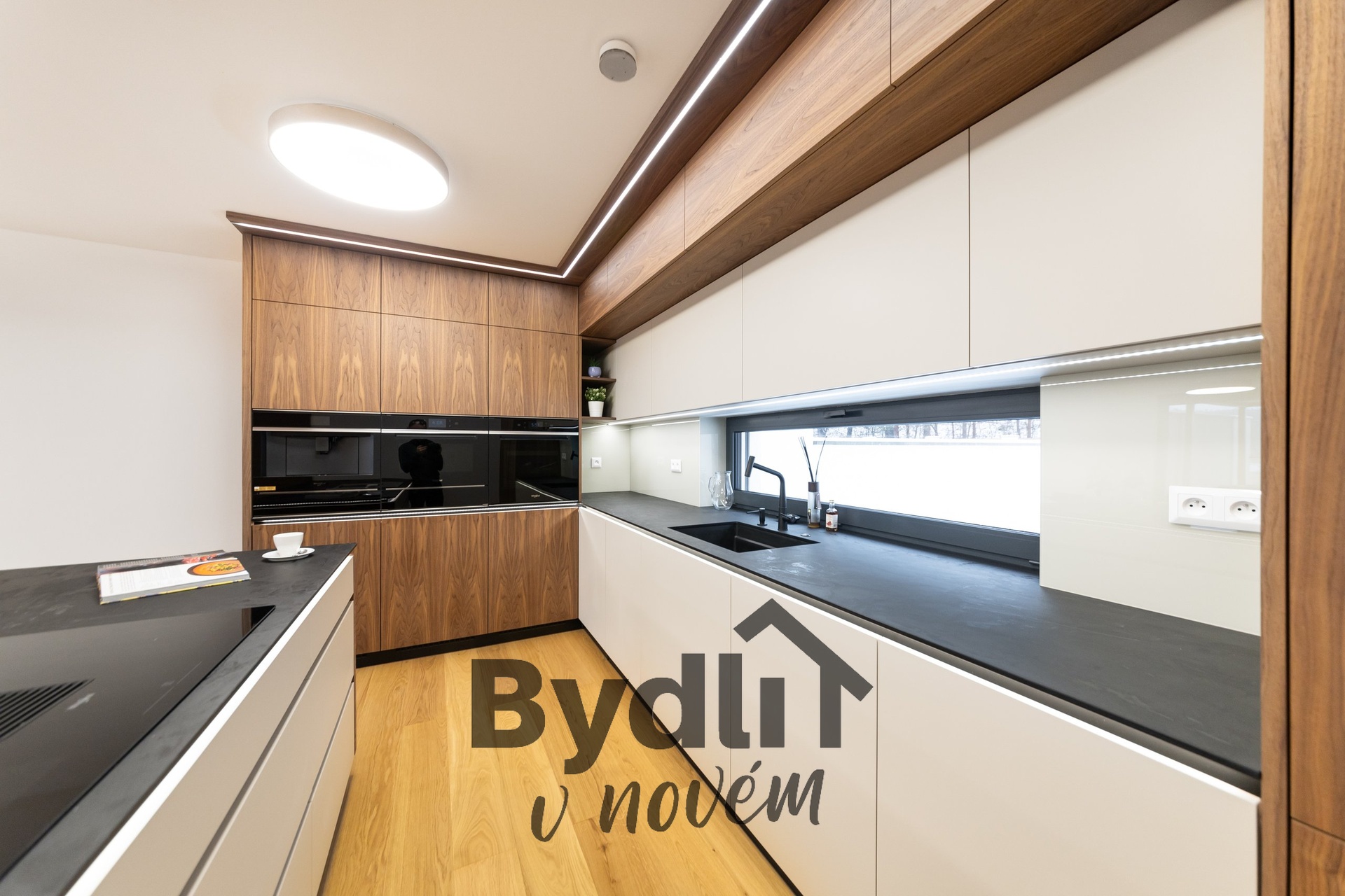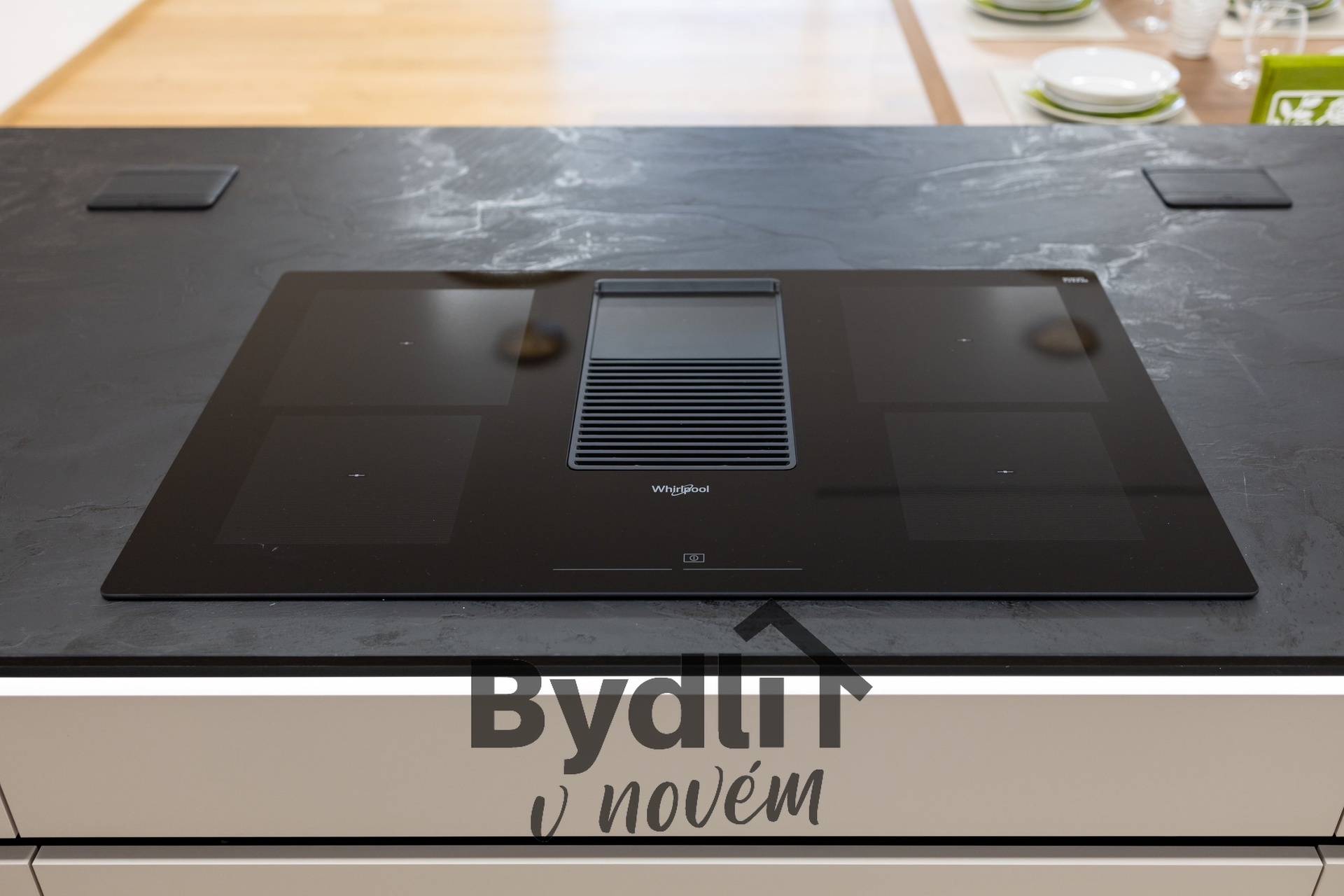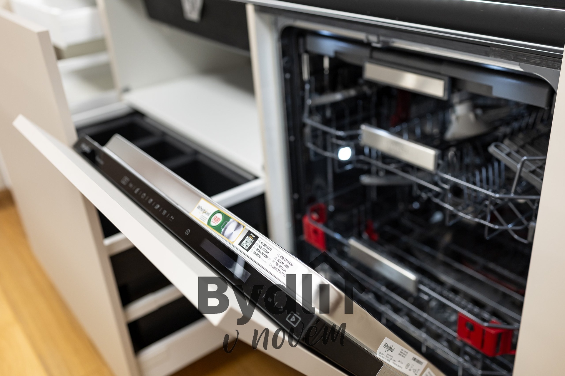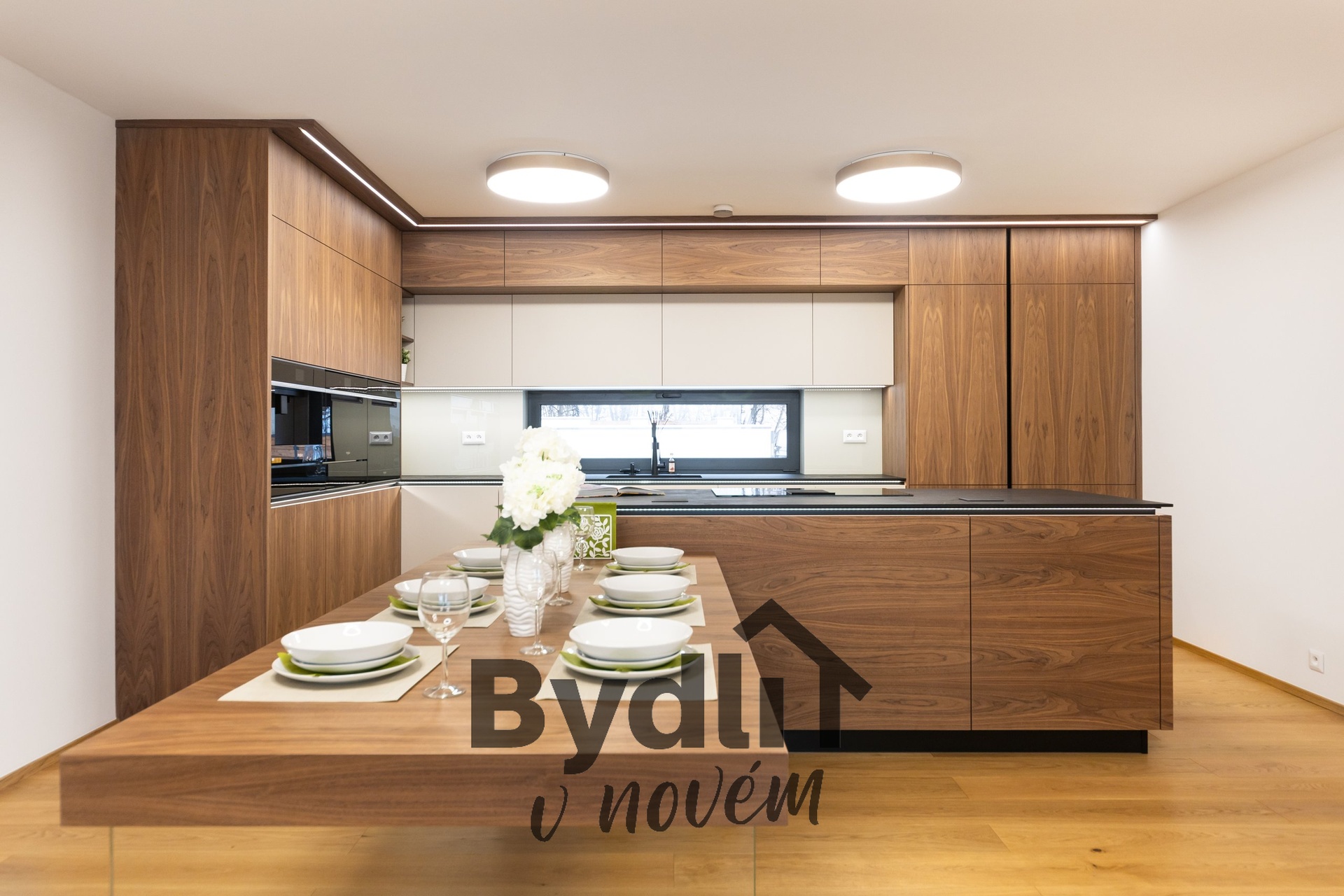 Kuchyňská linka s vestavěnými spotřebiči nejvyšší řady Whirlpool, včetně integrovaného kávovaru, výhřevných zásuvek a lednice o šířce 70cm. Součástí je praktický kuchyňský ostrůvek i designový jídelní stůl pro maximální komfort stolování a vaření.