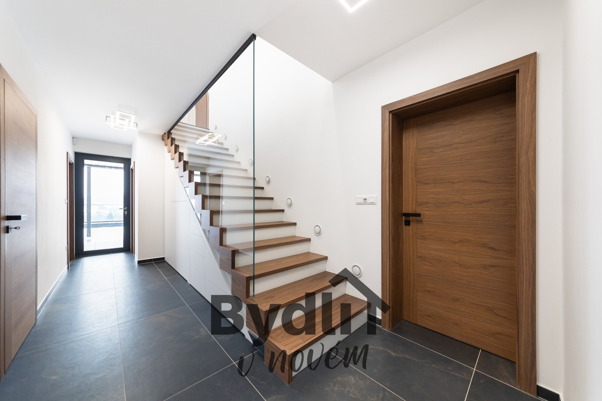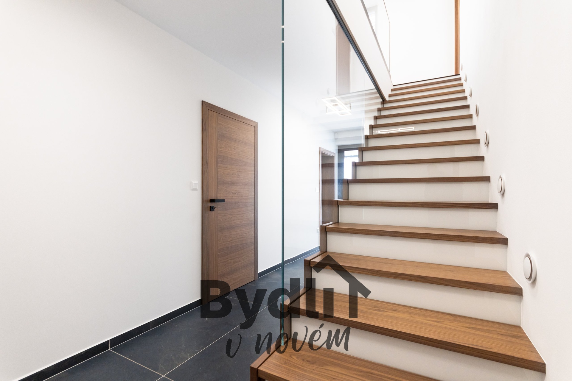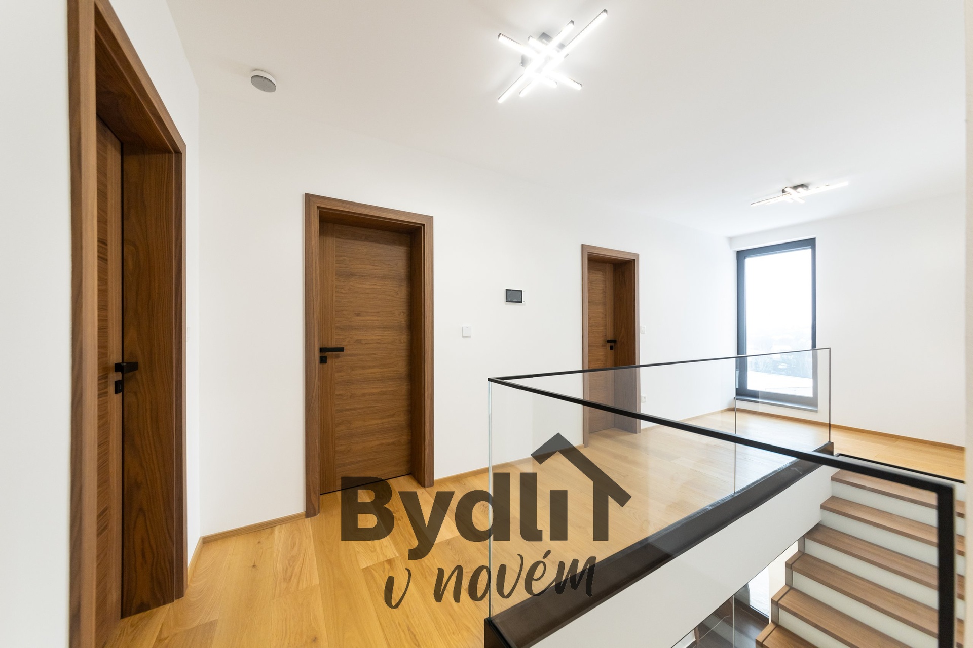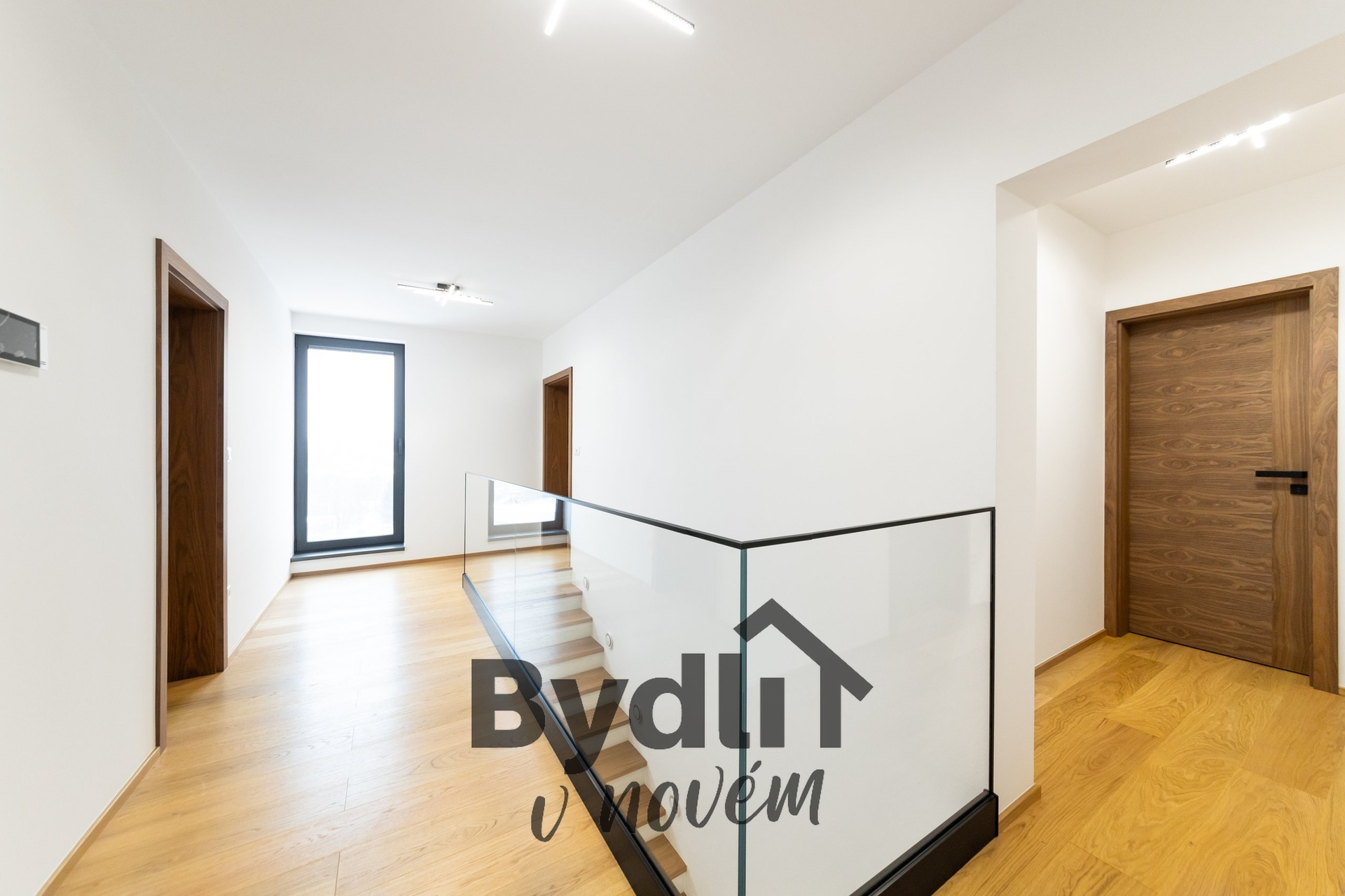 Masivní dřevěné podlahy, velkoformátové designové dlažby, koupelny na míru z prémiového studia, skleněné zábradlí v interiéru pro pocit vzdušnosti a světla.