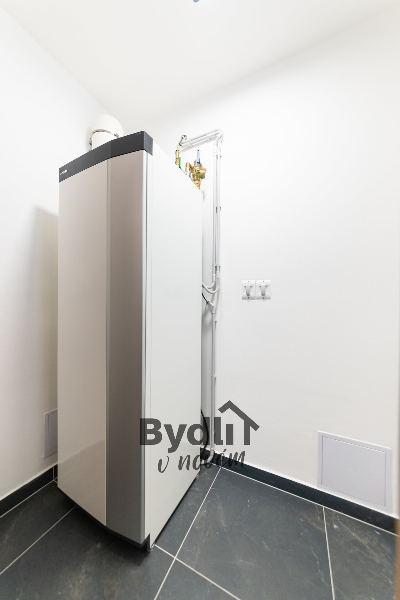 Podlahové vytápění s individuálním řízením pro každou místnost, prostorná šatna, dvě designové toalety, dostatek úložných prostor.
