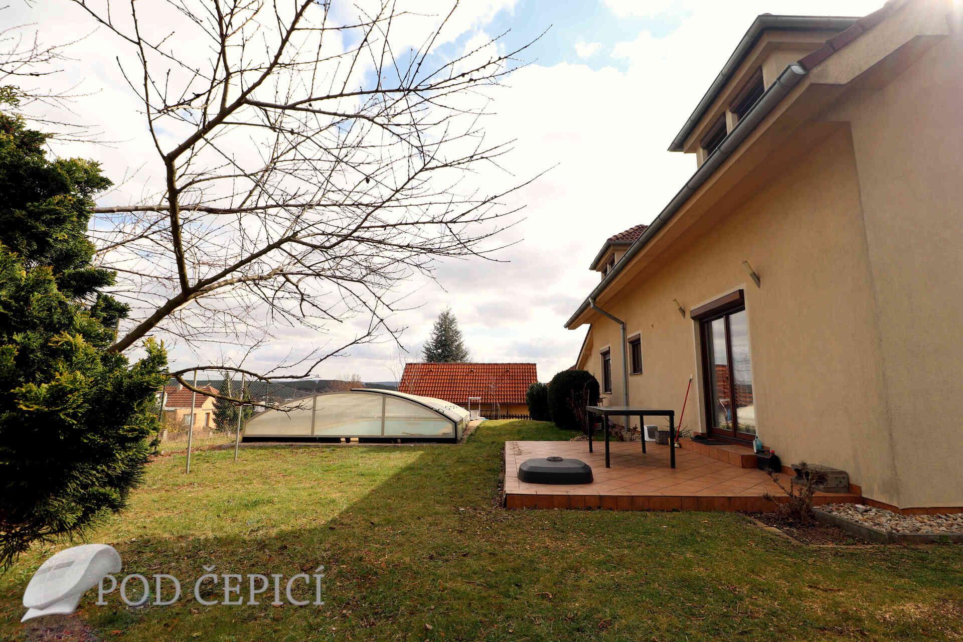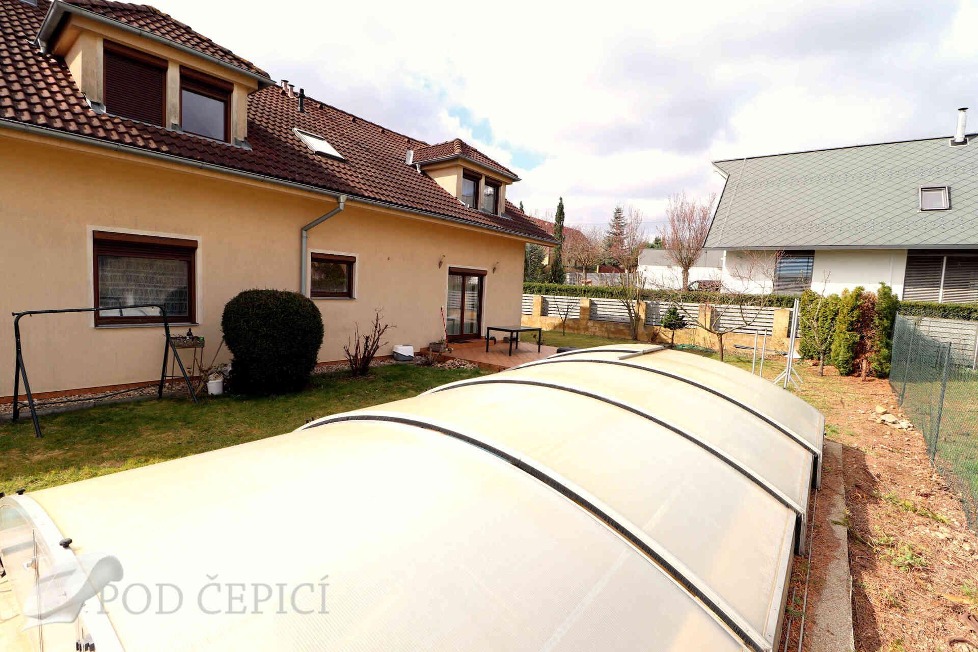 Nájemníci můžou využívat celou zahradu (450m2) dle libosti a v případě zájmu je jim k dispozici i bazén s výsuvným zastřešením. Vedle domu (na protější straně od garáže) je prostor, který lze využít k zaparkování vozu.