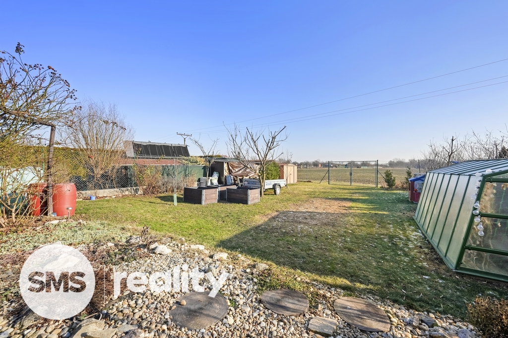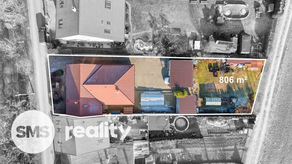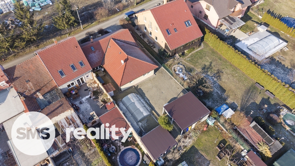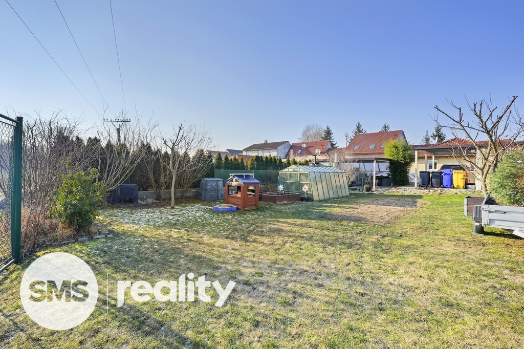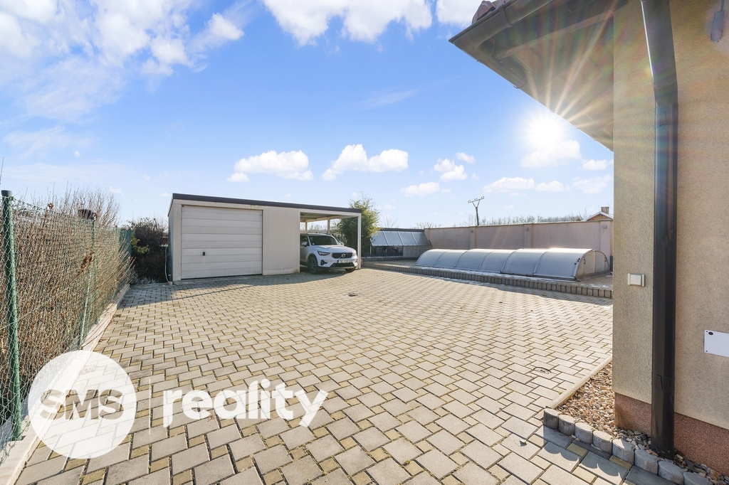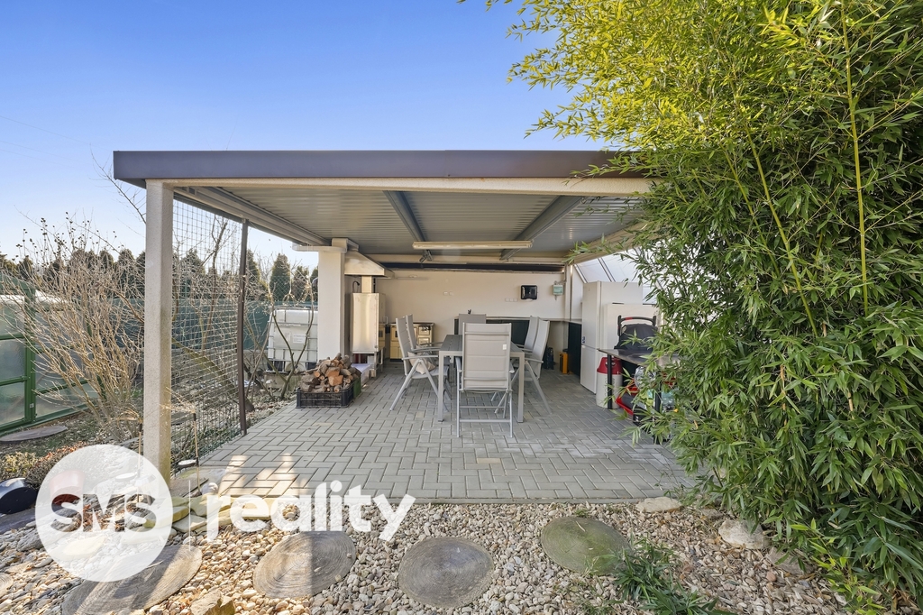 K domu přiléhá oplocená zahrada, se samostatně stojící garáží, posezením, krytým bazénem se slanou vodou, a skleníkem.
