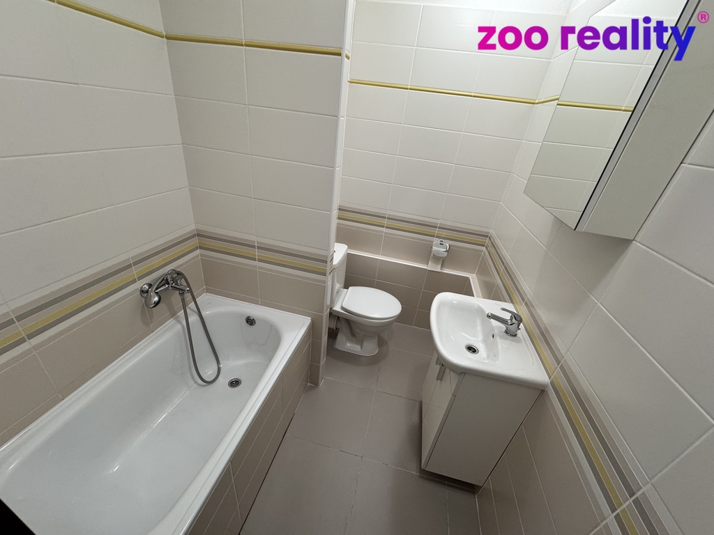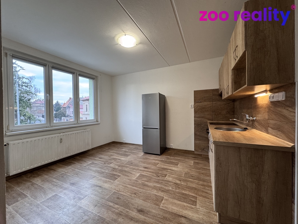 Nabízíme k pronájmu zcela zrekonstruovaný byt ve velmi slušném vchodě v prvním patře zcela z revitalizovaného domu s výtahem. Byt se skládá z chodby, koupelny s vanou, umyvadlem se skříňkou a zrcadlem nad ním a toaletou. Prostorné kuchyně se sklokeramickou deskou, elektrickou troubou a digestoří a odděleným pokojem.