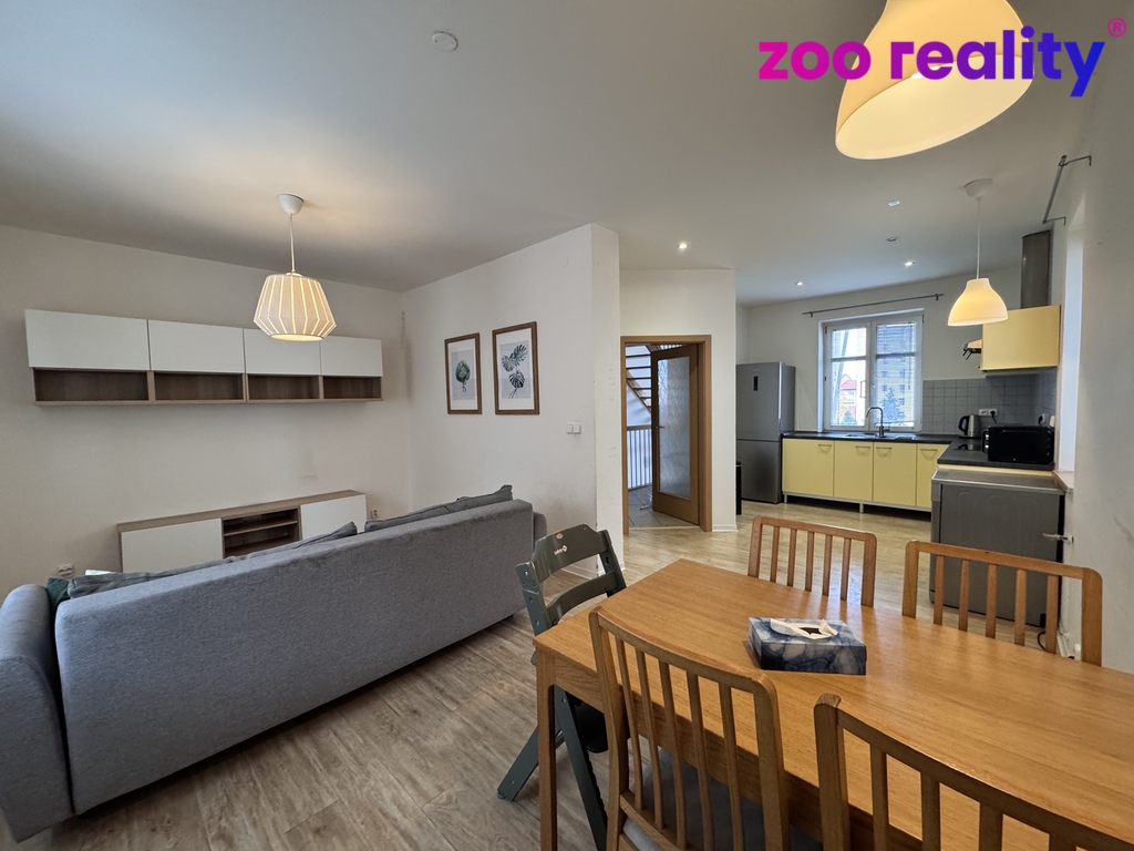 Nabízíme k pronájmu naprosto úžasný řadový dům v klidné části města Žatec. Nemovitost disponuje třemi patry, přičemž v přízemí se nachází jeden pokoj s velmi prostornou koupelnou, kde se nachází jak sprchový kout, tak i vana, toaleta a funkční sauna. Z pokoje se dá vstoupit i na zahradu. V prvním patře se nachází kuchyně se spotřebiči, jídelní kout a obývací pokoj. V podkroví je velmi prostorná ložnice a koupelna se sprchovým koutem a toaletou. Všechny části krásně propojuje dřevěné schodiště.