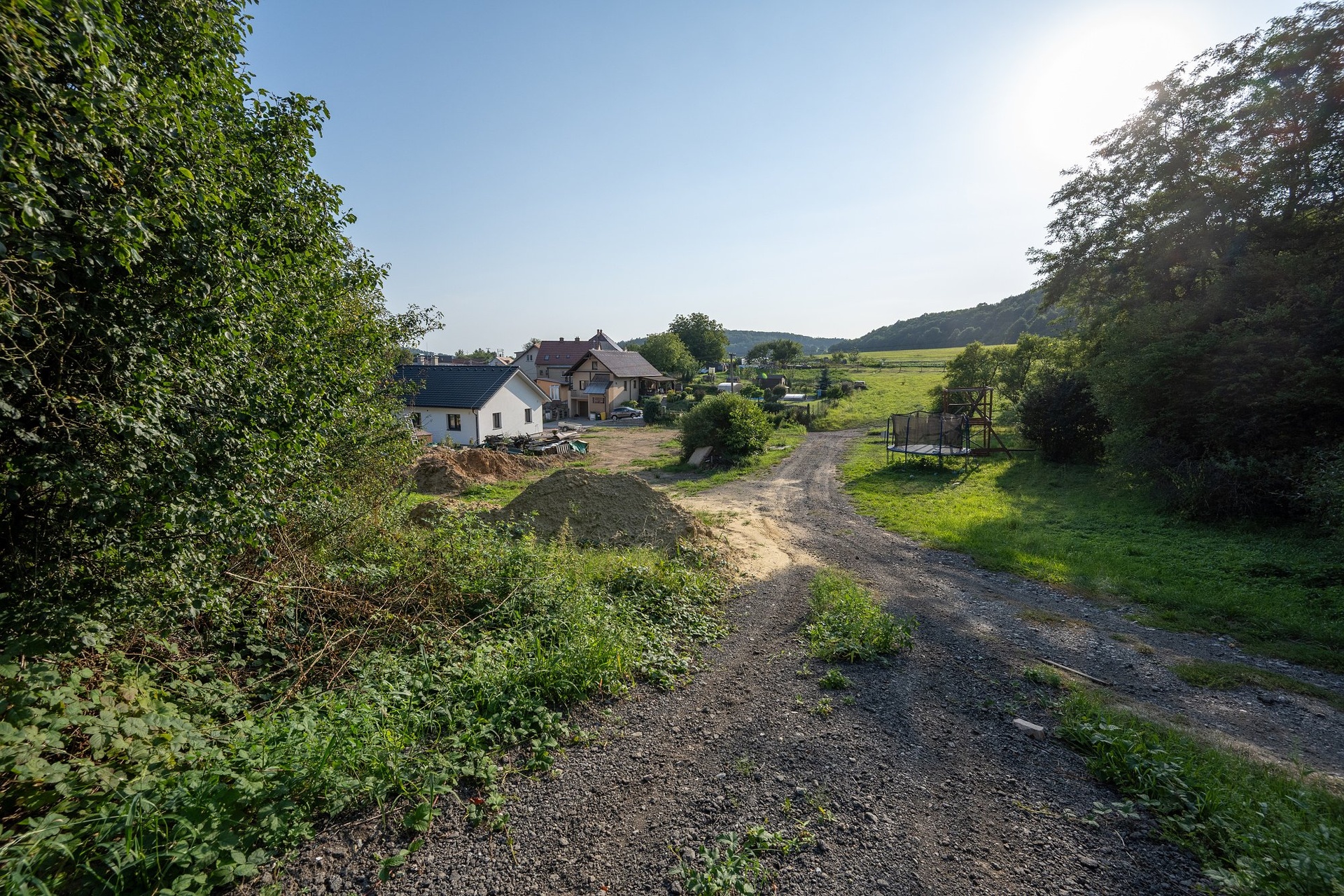 Pozemek se nachází na krásném vyvýšeném místě nad obcí s výhledem do okolní přírody.