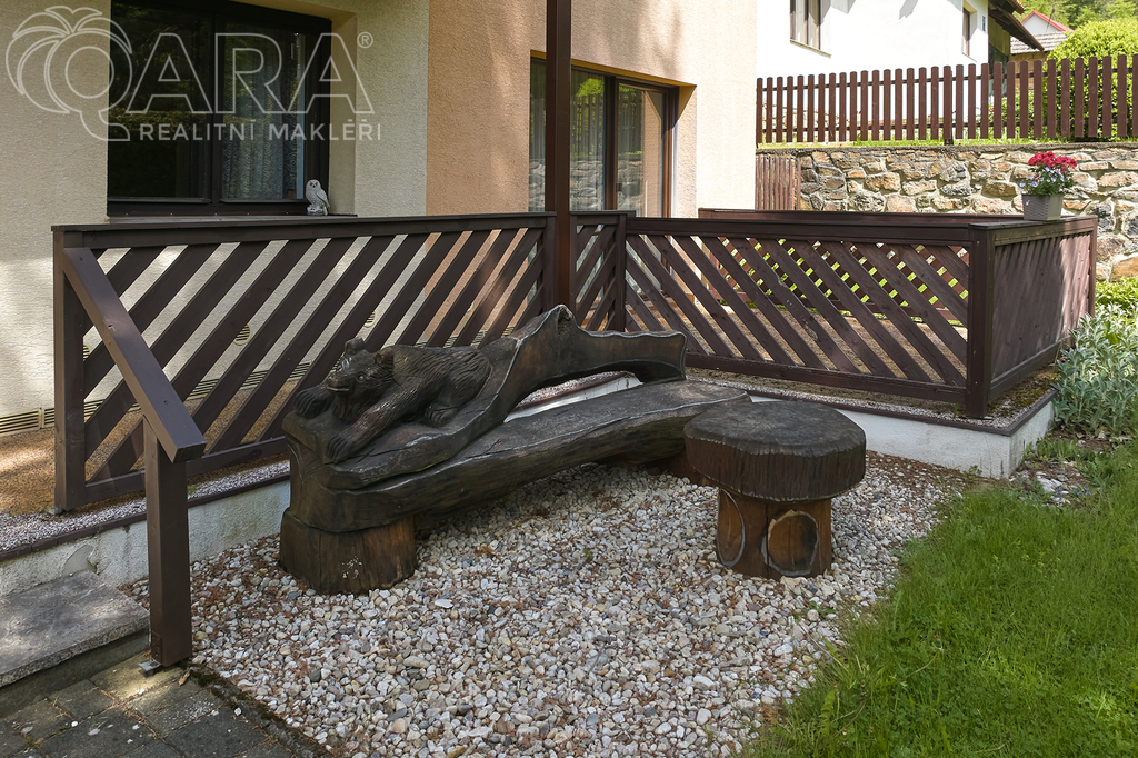 Tento rodinný dům, rekonstruovaný v 90. letech, stojí na pozemku obdélníkového tvaru o velikosti 442 m2. Zahrada je okrasná a k dispozici je také samostatná dřevěná dílna se skladem.
