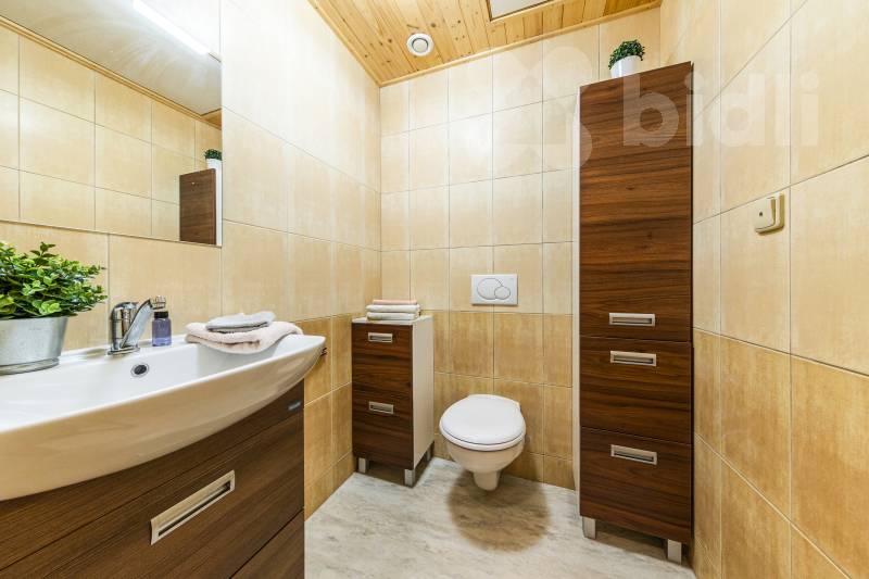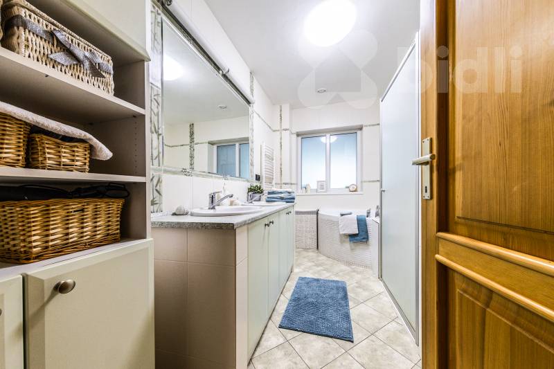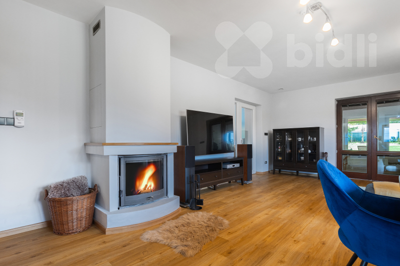 V přízemí najdete prostorný obývací pokoj s krbem, propojený s novou kuchyní, dvě ložnice, samostatné WC a koupelnu. V patře, které prošlo kompletní rekonstrukcí v roce 2020, se nacházejí čtyři samostatné pokoje, z toho jeden se šatnou, příprava na kuchyň, další koupelna s vanou, sprchovým koutem, dvoj umyvadlem a samostatné WC.