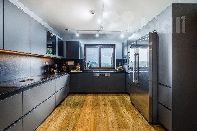 Celý dům je podsklepený, což přináší další využitelný prostor - najdete zde dvojgaráž, posilovnu, kotelnu, prádelnu se sprchou a další toaletu.