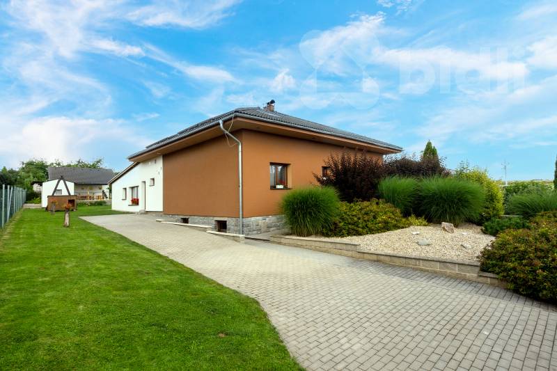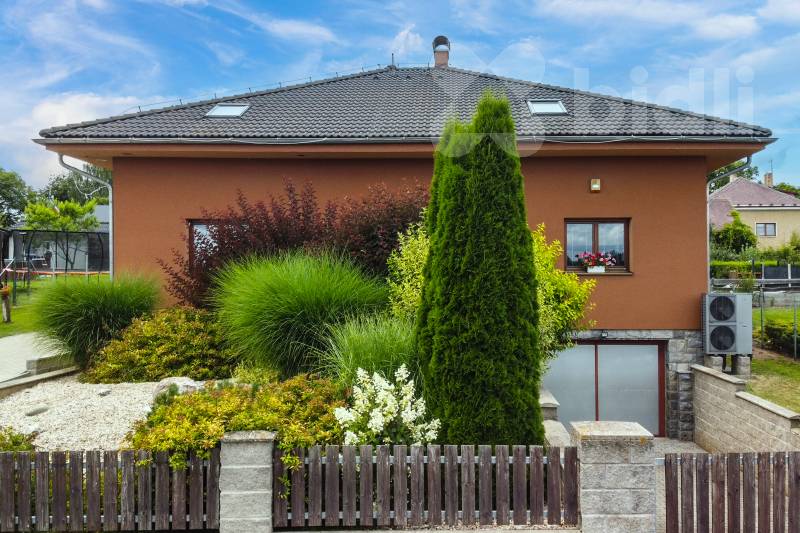 Na pozemku je také retenční nádrž na dešťovou vodu o objemu 30 m³, což zajišťuje pohodlné a ekologické zalévání zahrady během celého roku.