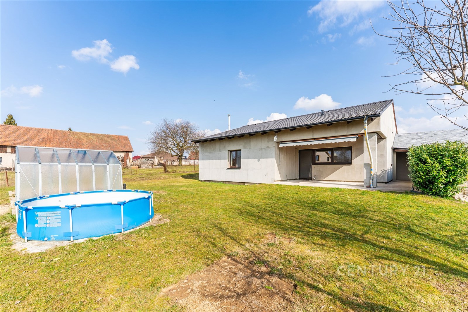 Velkým benefitem je samotná zahrada. Prostor, který není jen kolem domu, ale skutečně funguje – dostatek místa pro relaxaci, bazén, zahradničení i rodinné aktivity. Na pozemku se nachází také kryté parkovací stání pro automobil.