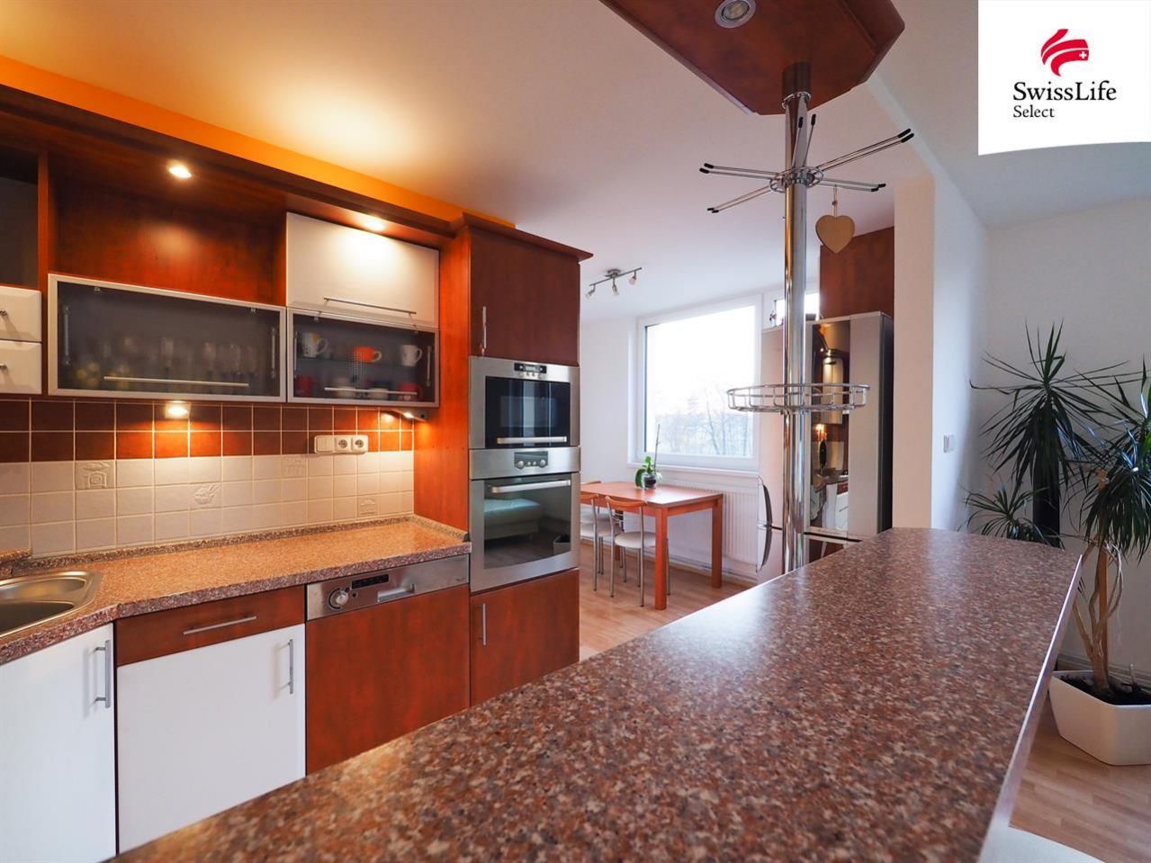 Nabízíme k dlouhodobému pronájmu byt o velikosti 3+KK situovaný ve 2. nadzemním podlaží pětipodlažního bytového domu (s výtahem). Celková podlahová plocha bytové jednotky včetně příslušenství je 71,60 m2. V této výměře není započtena plocha lodžie 4,80 m2, která k jednotce patří. Dispozice bytové jednotky: předsíň (7,20 m2), obývací pokoj + KK (28,00 m2), pokoj (14,10 m2), pokoj (12,30 m2), koupelna + WC (3,60 m2), komora (2,70 m2), technická místnost (1,7 m2). Příslušenstvím bytu je sklepní kóje o ploše 2,00 m2 umístěná v 1. nadzemním podlaží. Byt je po celkové rekonstrukci: vyzděné bytové jádro, nové rozvodové sítě, štukové omítky, podlahová krytina (lino/keramická dlažba), topný systém s deskovými radiátory, kuchyňská linka včetně integrovaných elektrospotřebičů, sanitární vybavení/keramické obklady, interiérové dveře. Vytápění a ohřev teplé vody zajišťuje vlastní plynový kotel umístěný v technické místnosti. Dům prošel komplexní revitalizací: výměna domovních rozvodů, rekonstrukce střechy, výměna oken a vstupních portálů, fasádní kontaktní zateplovací systém se strukturální omítkou, přístavba lodžií, modernizace výtahu. Poloha nemovitosti na hranici mezi městskou zástavbou a krajinou (2 km od centra) poskytuje optimální bydlení pro rodinu s dětmi, mladé páry a zájemce, kteří hledají klidné bydlení a zároveň dostupnost občanského vybavení a služeb.