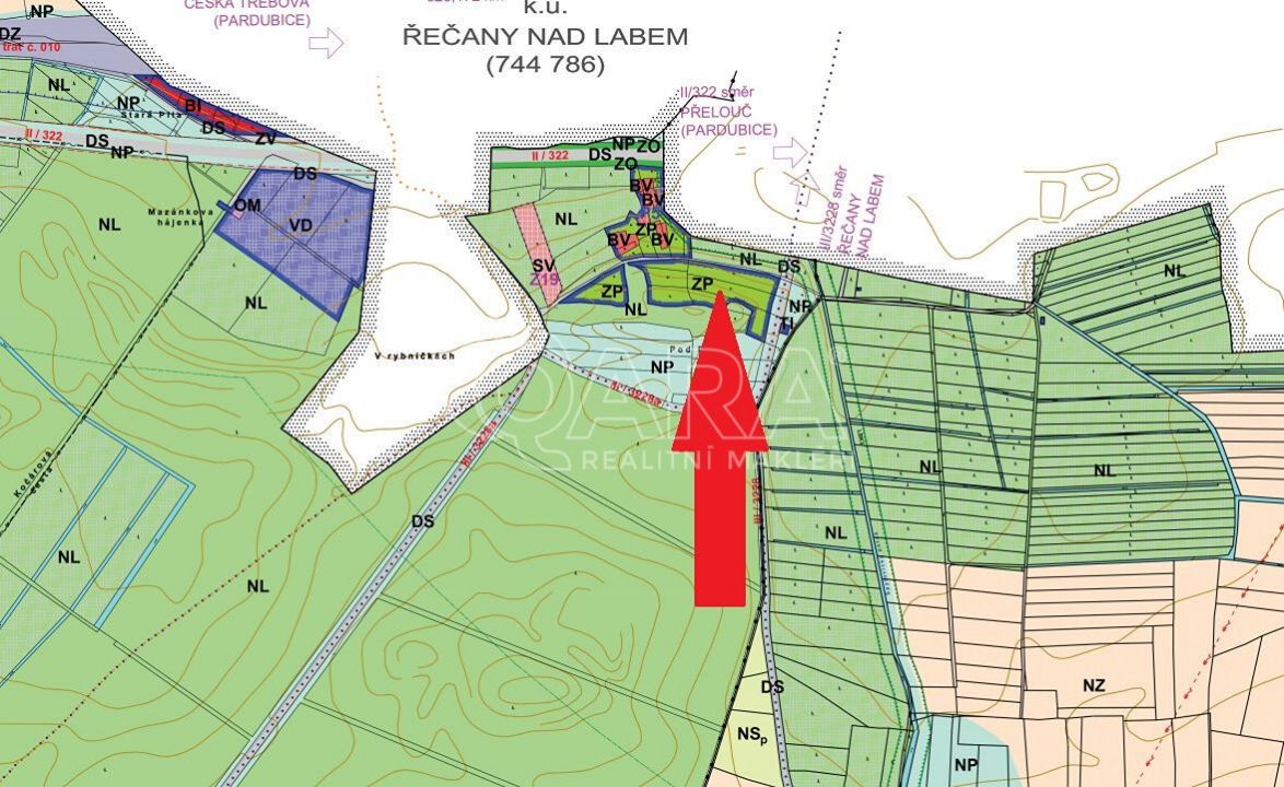 Na pozemku dřevěný sklad, využívaný jako chata a malý sklep. Územním plánem pozemek označen jako SV plochy smíšené obytné. Vodovod ani kanalizace v místě není, nutno řešit studnou a septikem. Pozemek v katastru Zdechovice, ale v blízkosti obce Řečany nad Labem.