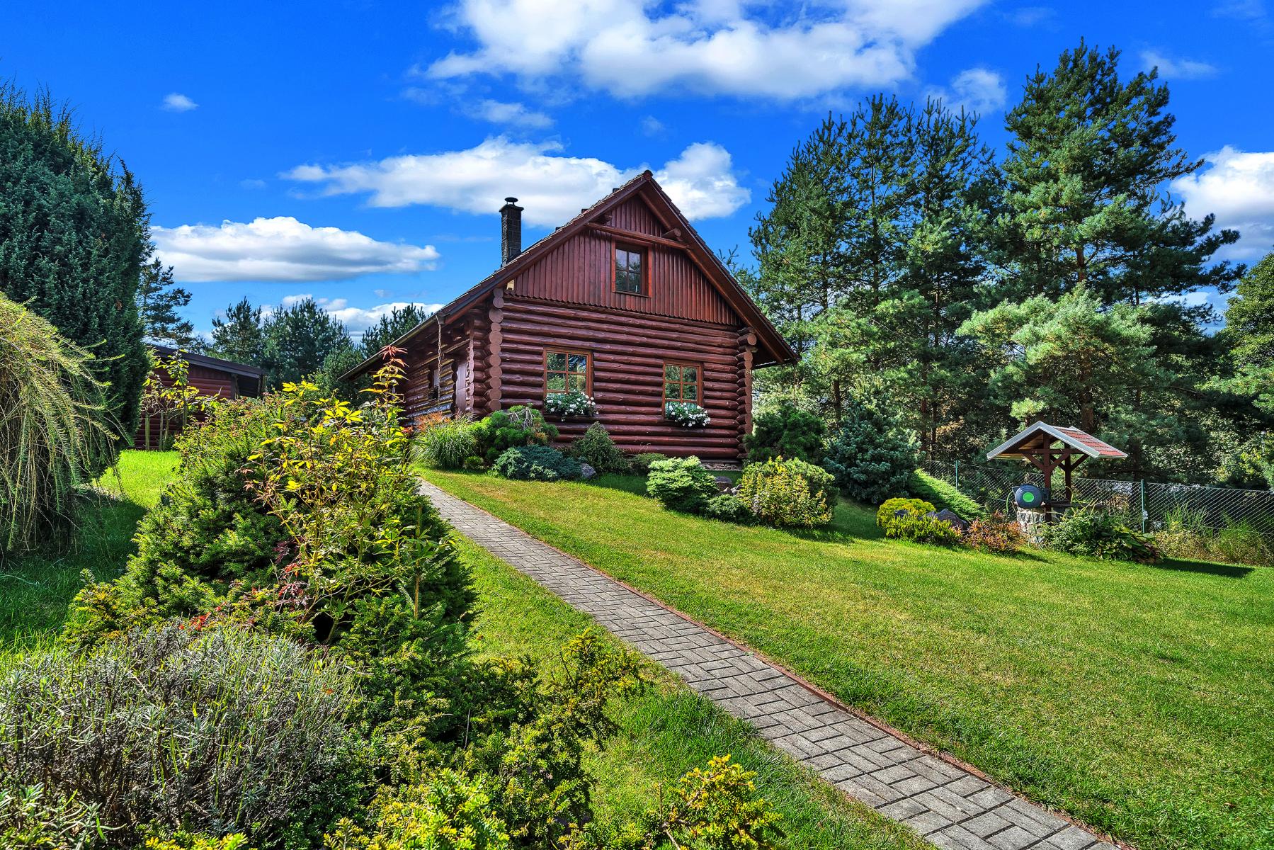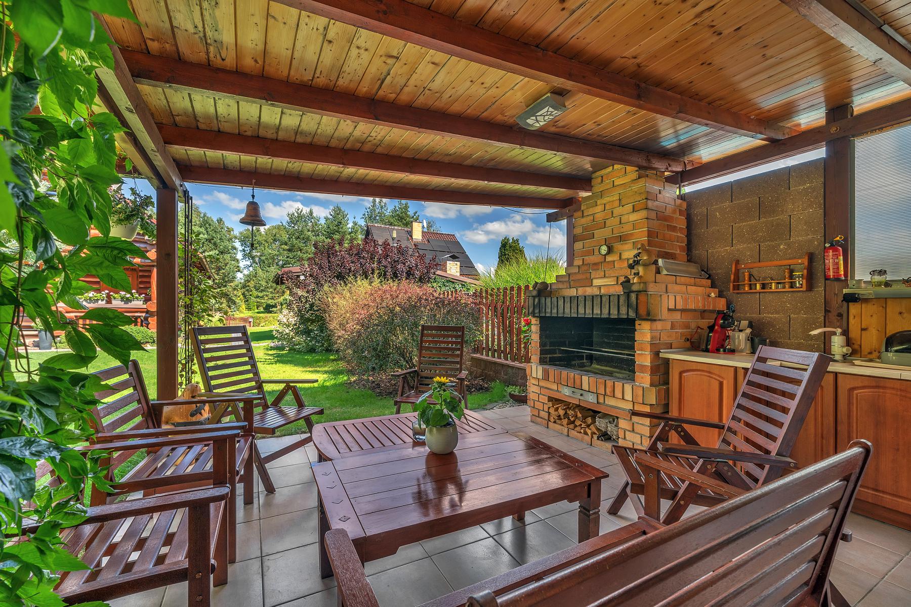 Luxusní srub s vybavením na míru, okrasnou zahradou a šamotovým grilem