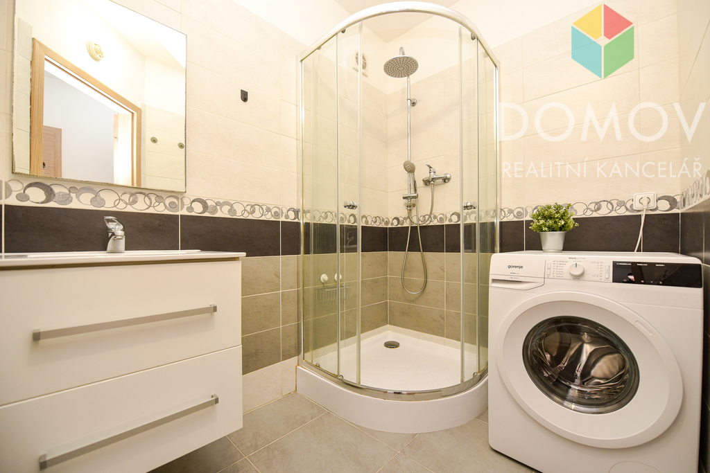 V bytě je zařízena moderní kuchyňská linka, vybavená plynovým sporákem s el. troubou, myčkou, lednicí a mikrovlnkou.