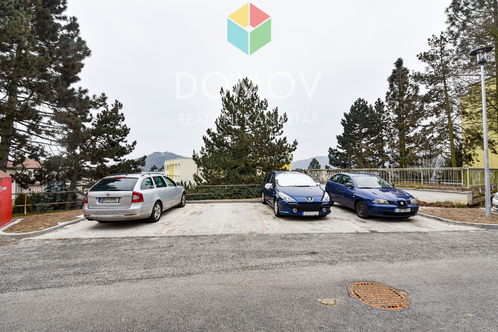 K bytu náleží prostorná lodžie o velikosti 5 m², sklep 3 m² a praktická komora 1 m². Velkou výhodou je bezproblémové parkování přímo před domem a bezbariérový přístup do bytu.