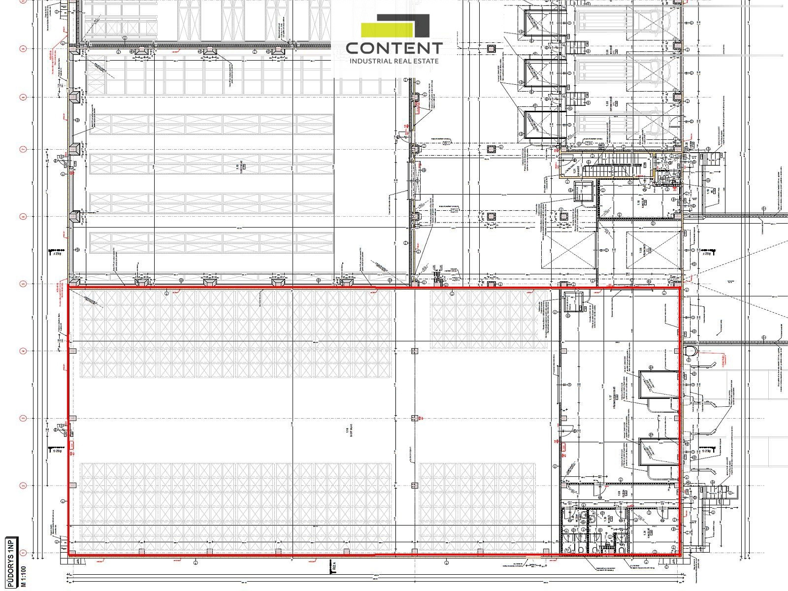 - vnitřní manipulační plocha s kanceláří a zázemím 200 m²,