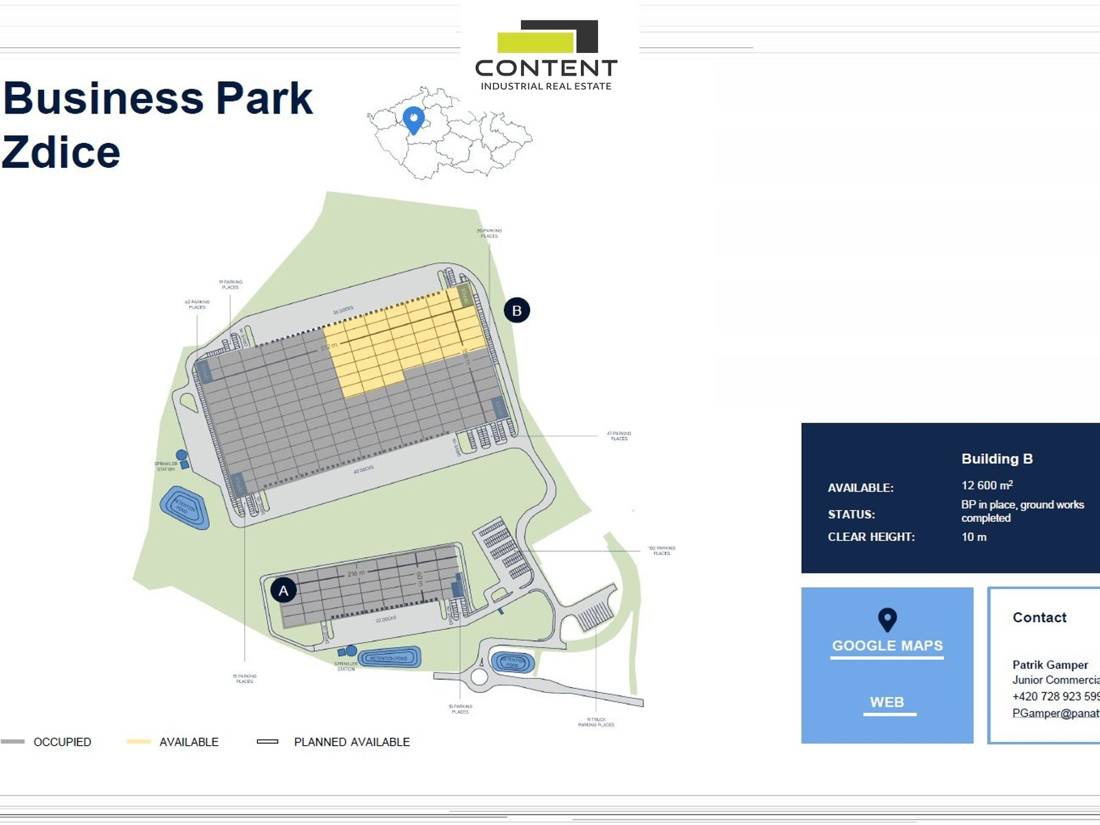 - nové skladové nebo výrobní prostory s výměrou cca 5000 - 12600 m²,