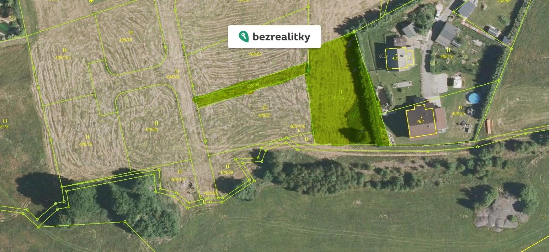 Pozemek je příhodně jihozápadně nakloněn v otevřené krajině a velmi vhodný pro výstavbu nízkoenergetického domu s fotovoltaickou elektrárnou.