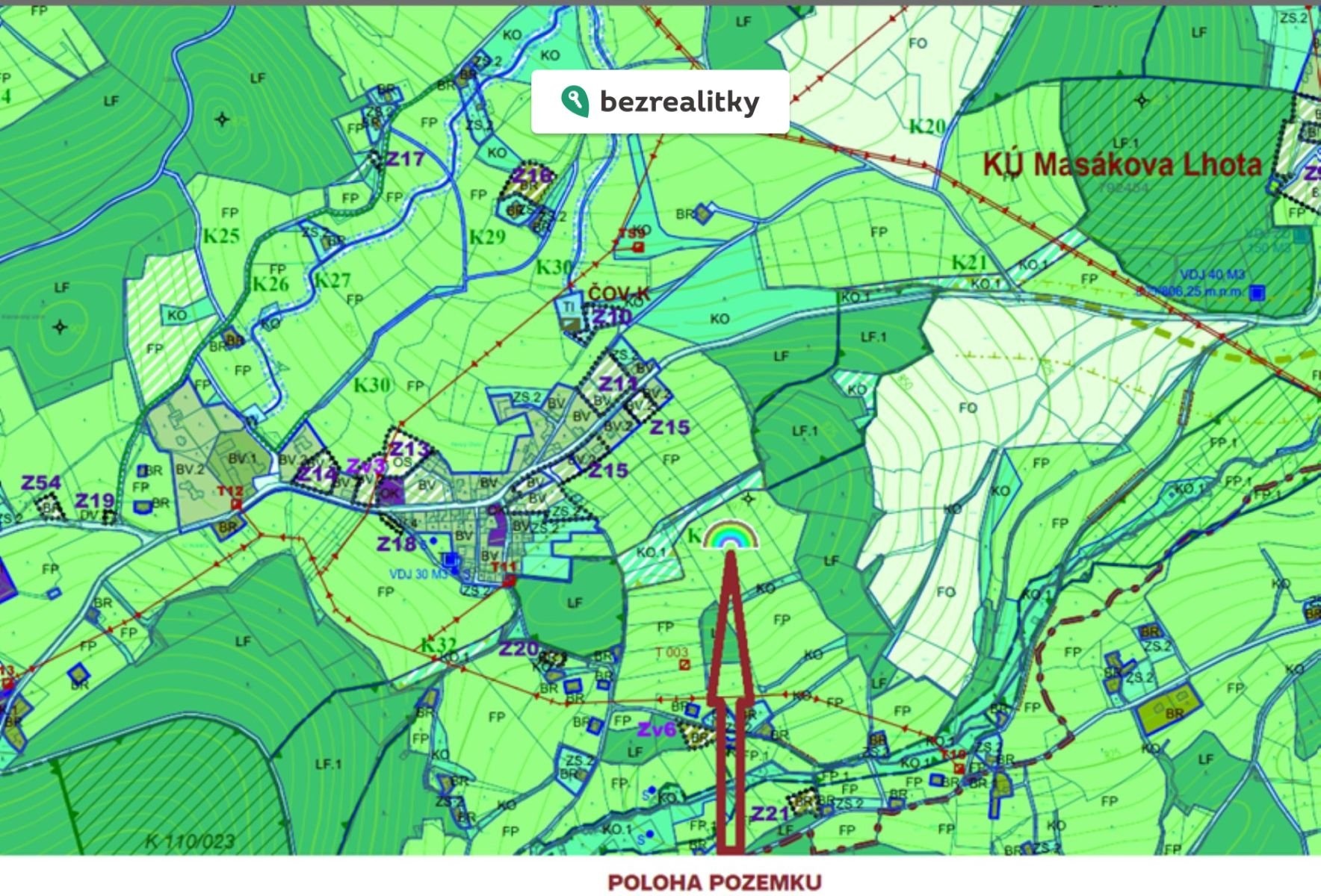 Největší z těchto pozemků je v platném územním plánu veden jako plocha FP - louky a pastviny. Další z pozemků je v blízkosti vodního toku, vlastně jeho součástí - břeh. Třetí pozemek je veden jako ostatní krajinná zeleň (remízek).