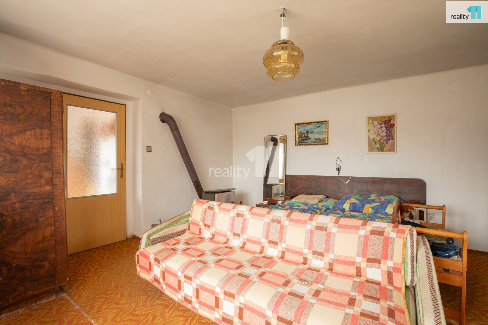 A právě tady stojí chalupa s duší. Dispozičně řešená jako 2+1, s koupelnou se sprchovým koutem a chemickým WC, nabízí jednoduché, ale poctivé zázemí pro víkendový odpočinek i delší pobyty. Vodu zajišťuje vlastní studna, dům je napojen na elektřinu a vytápění obstarávají kamna na tuhá paliva v každé místnosti – ideální pro ty, kdo mají rádi opravdové teplo domova.