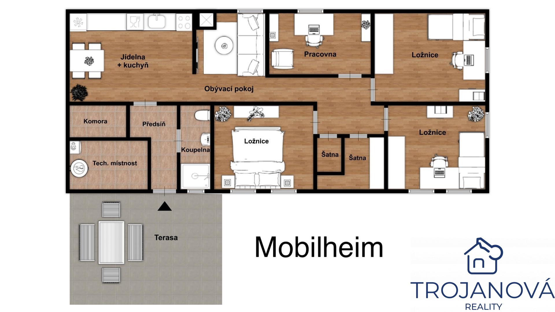 Na druhé části pozemku se nachází samostatný mobilheim, který může sloužit k bydlení, rekreaci nebo jako investiční příležitost (pronájem).