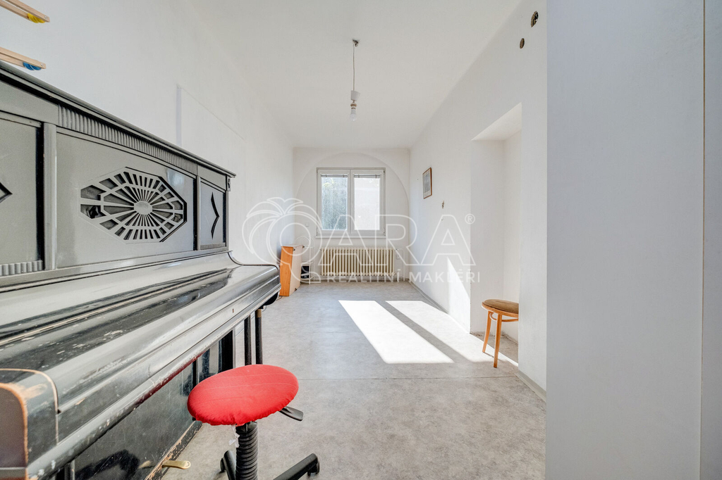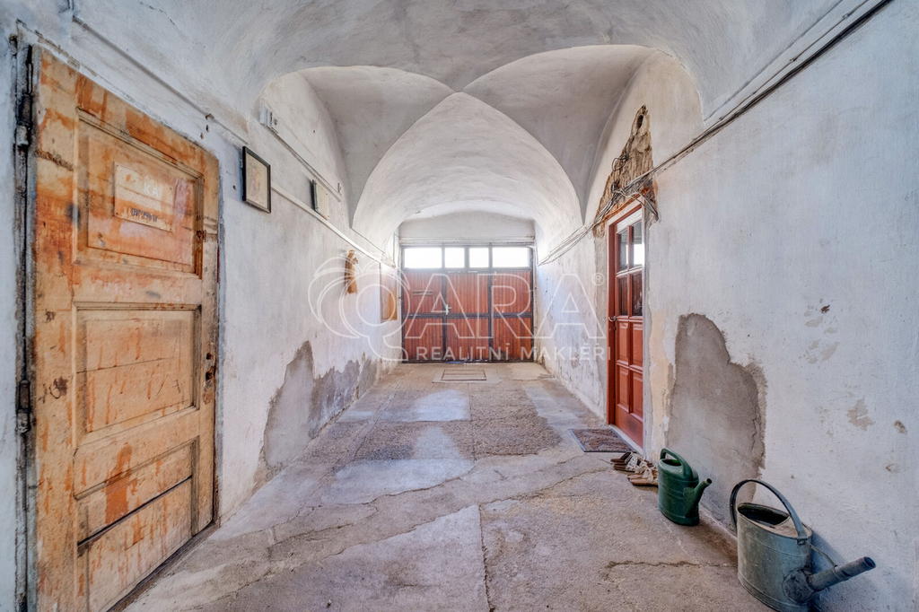 V přízemí se nachází byt 2+1 o celkové ploše 94 m2 se samostatným vstupem z průchodu domu, prostor s vchodem z ulice vhodný k podnikání (15 m2) a provozní prostory (bývalá kotelna, uhelna).