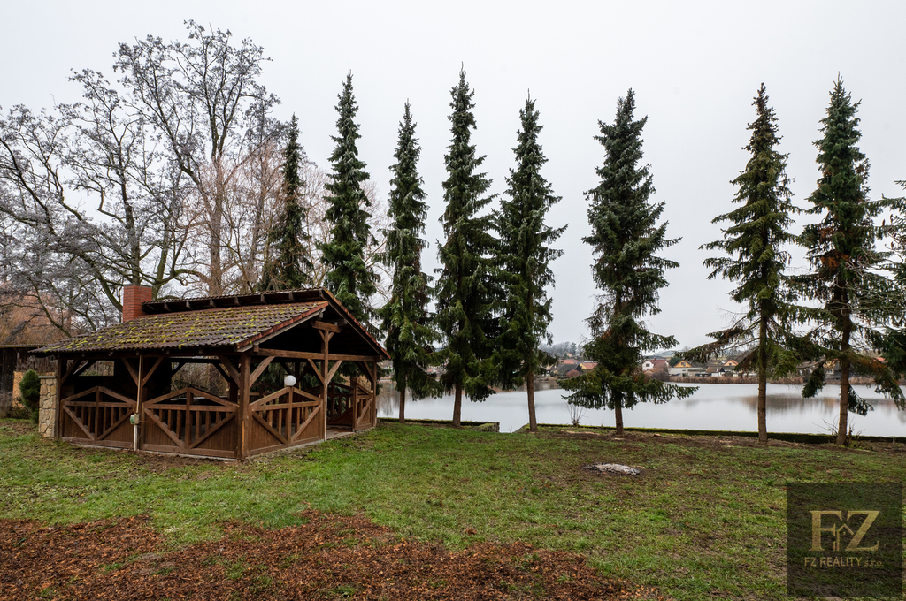 Nemovitost stojí na pozemku o výměře 1 752 m² se zastavěnou plochou 370 m². Pozemek sahá až k přilehlému rybníku a nabízí vlastní vstup přímo do vody, což je benefit, který u investičních objektů tohoto typu prakticky neexistuje a výrazně zvyšuje atraktivitu budoucích jednotek. Dům leží u hlavní silnice, kde je pohodlné parkování, a zároveň má vlastní kryté stání pro auta. Na zahradě je velká společenská pergola s grilem a krásným výhledem na rybník. Lokalita je velmi klidná, v těsné blízkosti domu není jiná rodinná zástavba, která by rušila pohodu a soukromí.