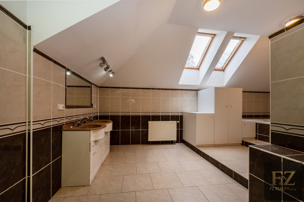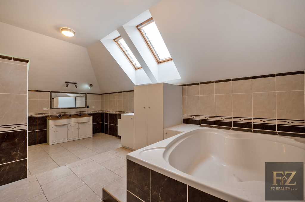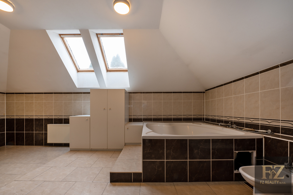 Dům je podsklepený, má dvě nadzemní podlaží a půdu (v podkroví mají dle projektu vzniknout 2 nové byty). Objekt je ve velmi dobrém stavu, suchý a čistý, po rozsáhlé rekonstrukci v roce 2013 – včetně nové střechy a kompletního zateplení. Konstrukčně jde o poctivou zděnou stavbu s betonovými stropy. Vytápění plynem, dva krby, ohřev teplé vody bojlery. Dům je napojen na veřejný vodovod. Aktuálně je v domě 6 koupelen a 7 samostatných WC.