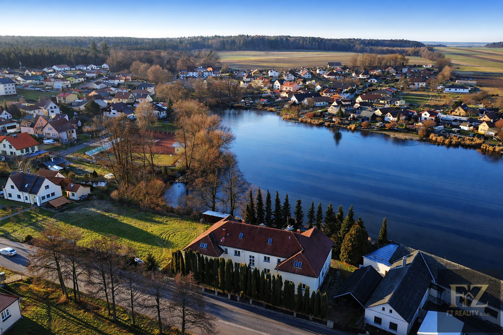 Nabízíme mimořádnou developerskou příležitost v Želči u Tábora, v obci s kompletní občanskou vybaveností. Budova je na katastru vedená jako rodinný dům, která má již ale SCHVÁLENÉ STAVEBNÍ POVOLENÍ na rekolaudaci na bytový dům s 10 prostornými byty. Taková kombinace připravenosti projektu, velikosti pozemku a přímého kontaktu s vodou se v regionu objevuje jen výjimečně – ideální pro investora, který chce jasný plán zhodnocení a současně produkt, který bude na trhu vynikat.