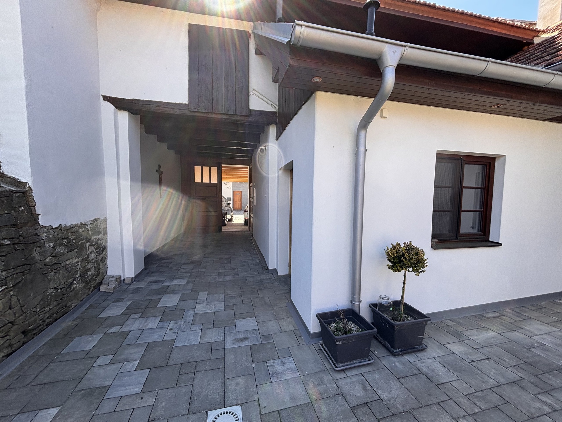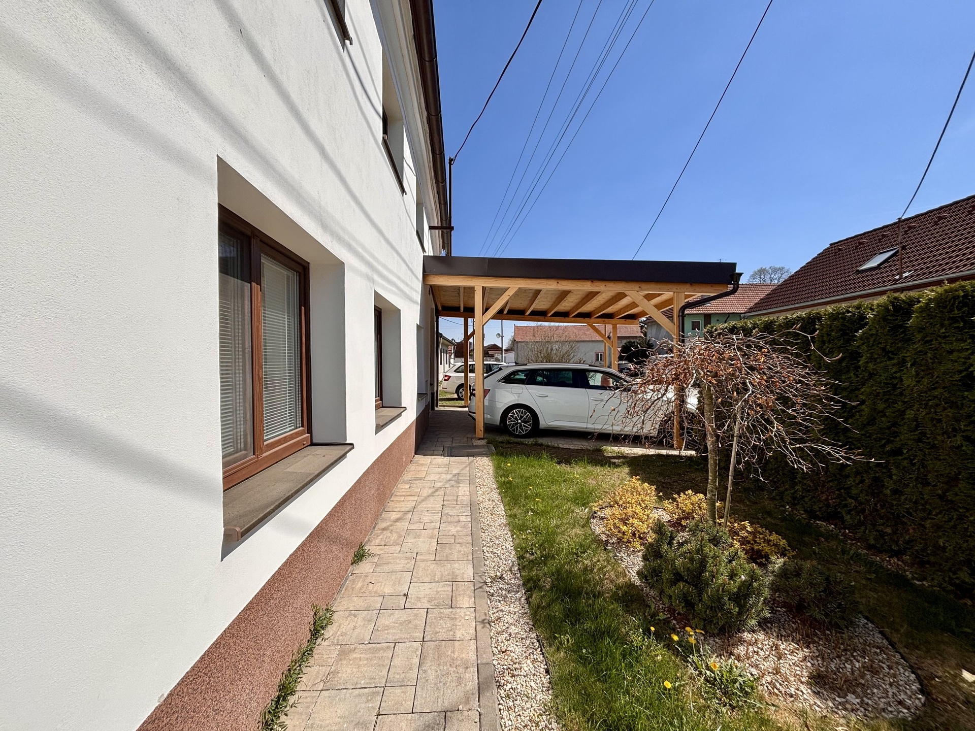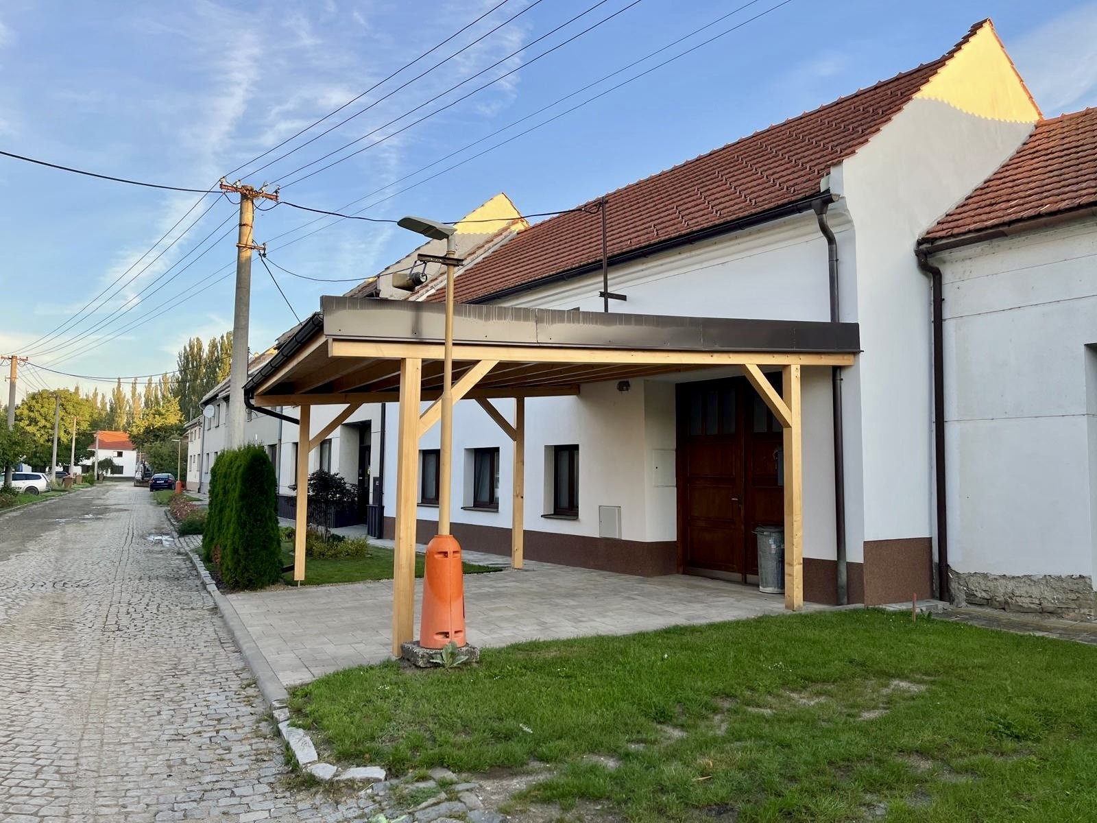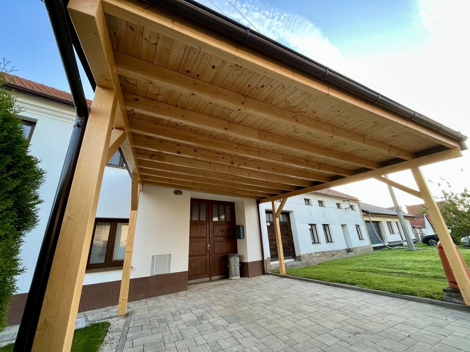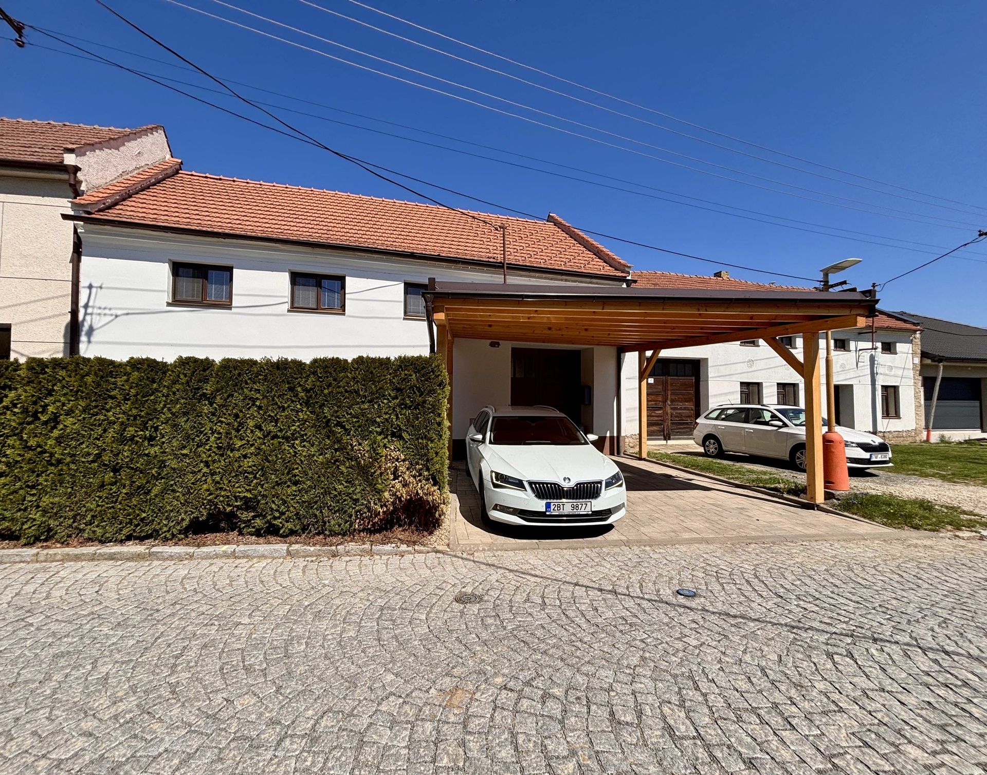 Parkování je zajištěno průjezdem a dvěma krytými parkovacími stáními přímo před domem.