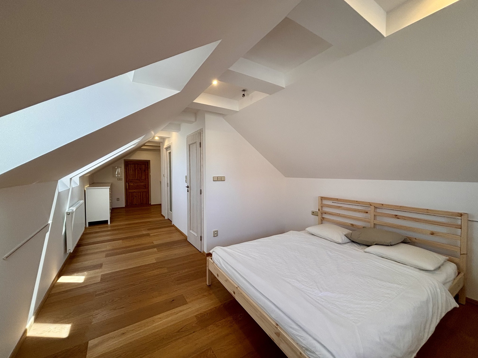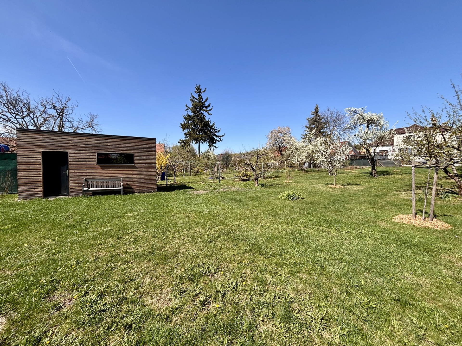 Skutečnou oázou klidu je nádherná zahrada s ovocnými stromy, která poskytuje maximální soukromí a harmonii. Samozřejmostí je automatická sekačka pro pohodlnou údržbu. Unikátním prvkem je rovněž moderní střešní zahrádka na přístřešku.