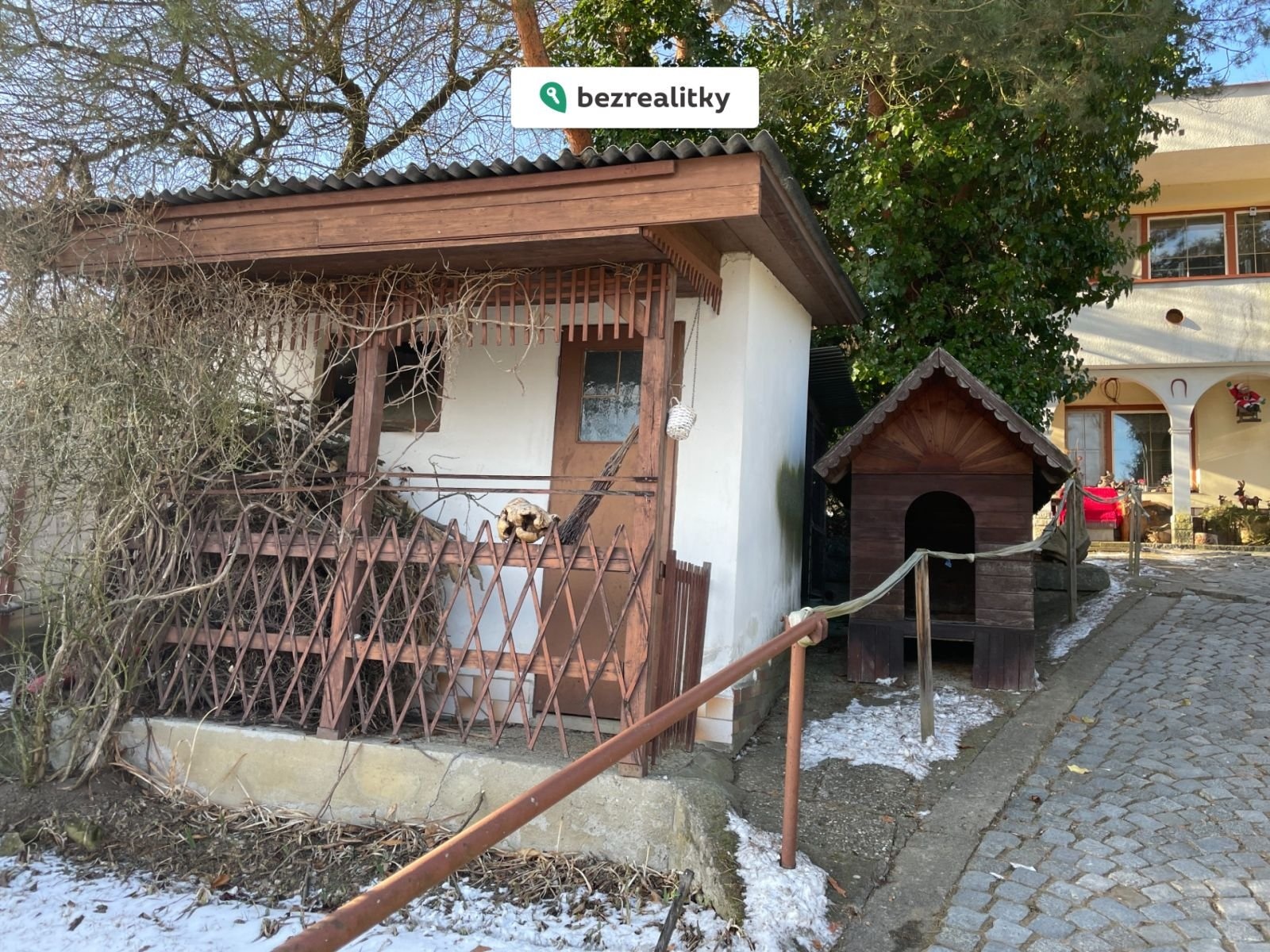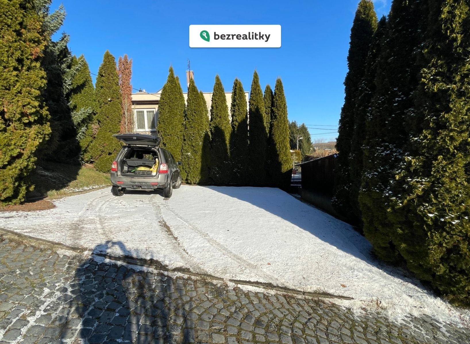 Příjezd k domu je svažitý s bránou na dálkové otevírání, čímž umožňuje pohodlný vjezd na pozemek. Celý pozemek o výměře 1223 m² je oplocen a zajišťuje tak soukromí. Za vjezdovou bránou se nachází parkovací stání pro 5 aut, rovněž zahradní domek/menší garáž.