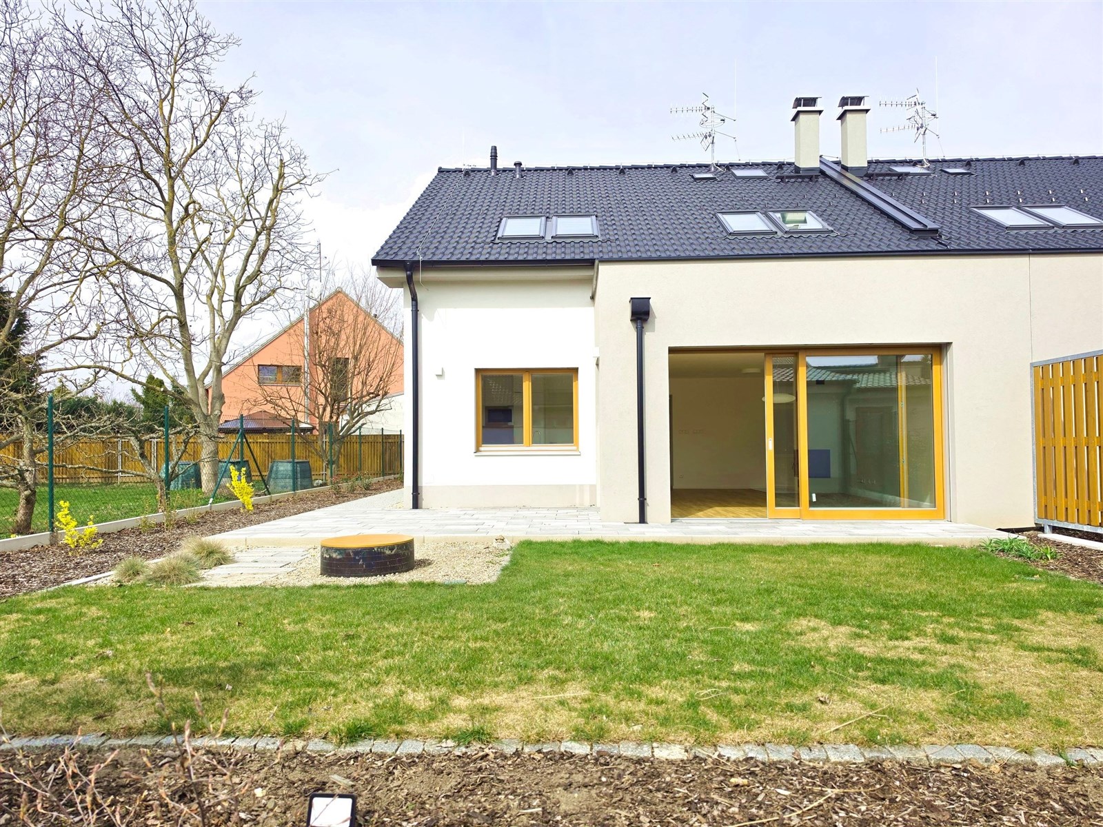 Zcela nový ještě nebydlený rodinný dům o dispozici: 1NP kuchyň s prostornou obytnou místností s krbem a francouzskými dveřmi na zahradu, spíž, pokoj, koupelna s WC, druhá menší kuchyňka, úložný prostor, 2NP koupelna s vanou i sprachovým koutem, 2 ložnice, další pokoj s druhou koupelnou a pracovnou. Na pozemku parkovací stání pro dva automobily (elektrická brána), na zahradě zahradní domek. Nájemné 45 tis + služby cca do 7 tis. Vratná kauce 80 tis , odměna RK 45 tis. K nastěhování od 15.51.6.2026 Určeno k dlouhodobému nájmu.