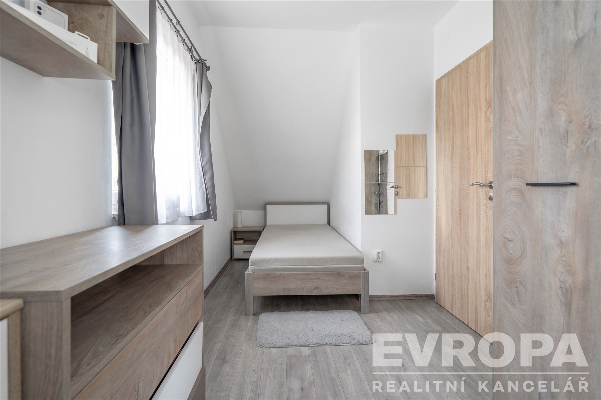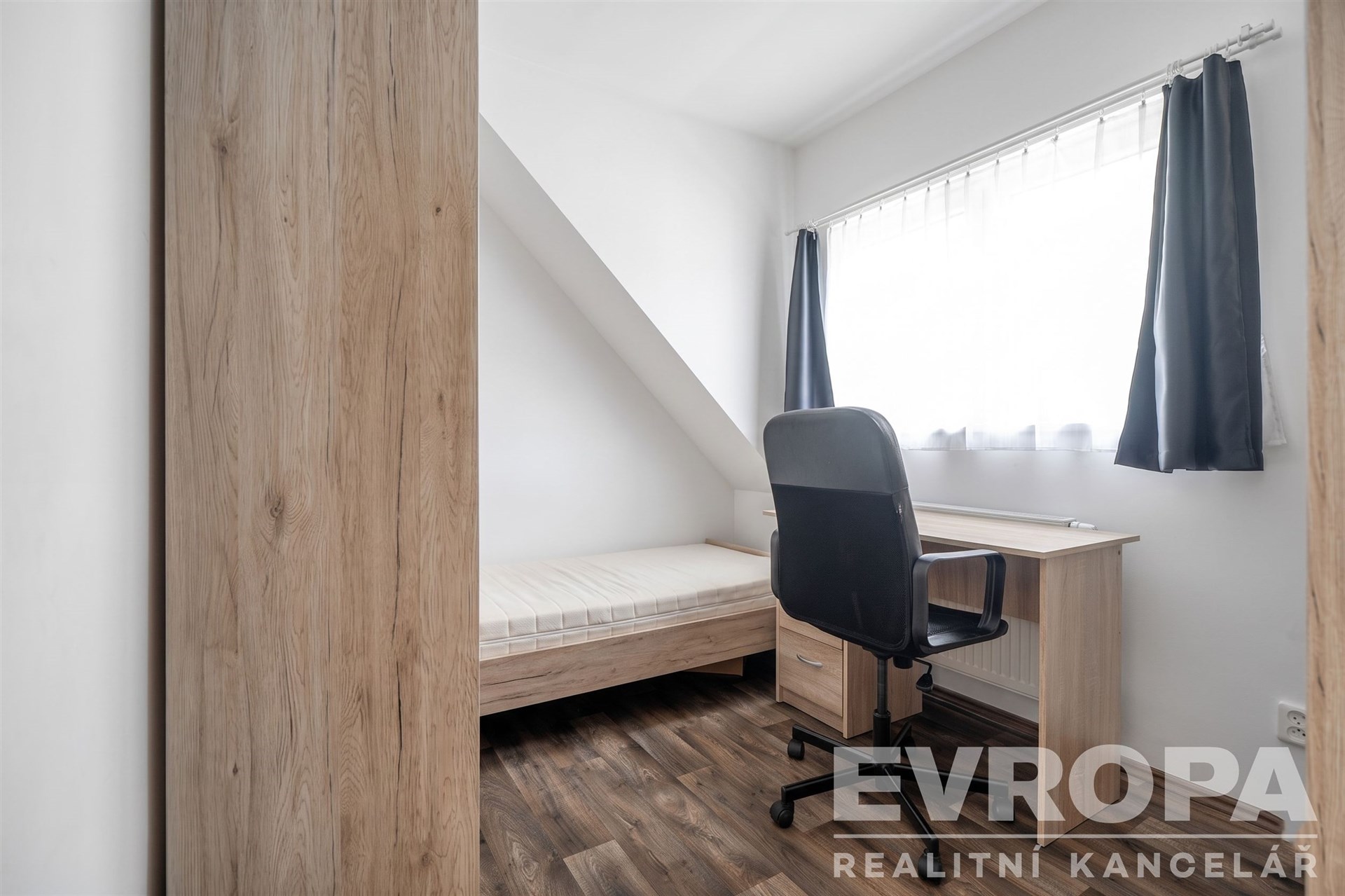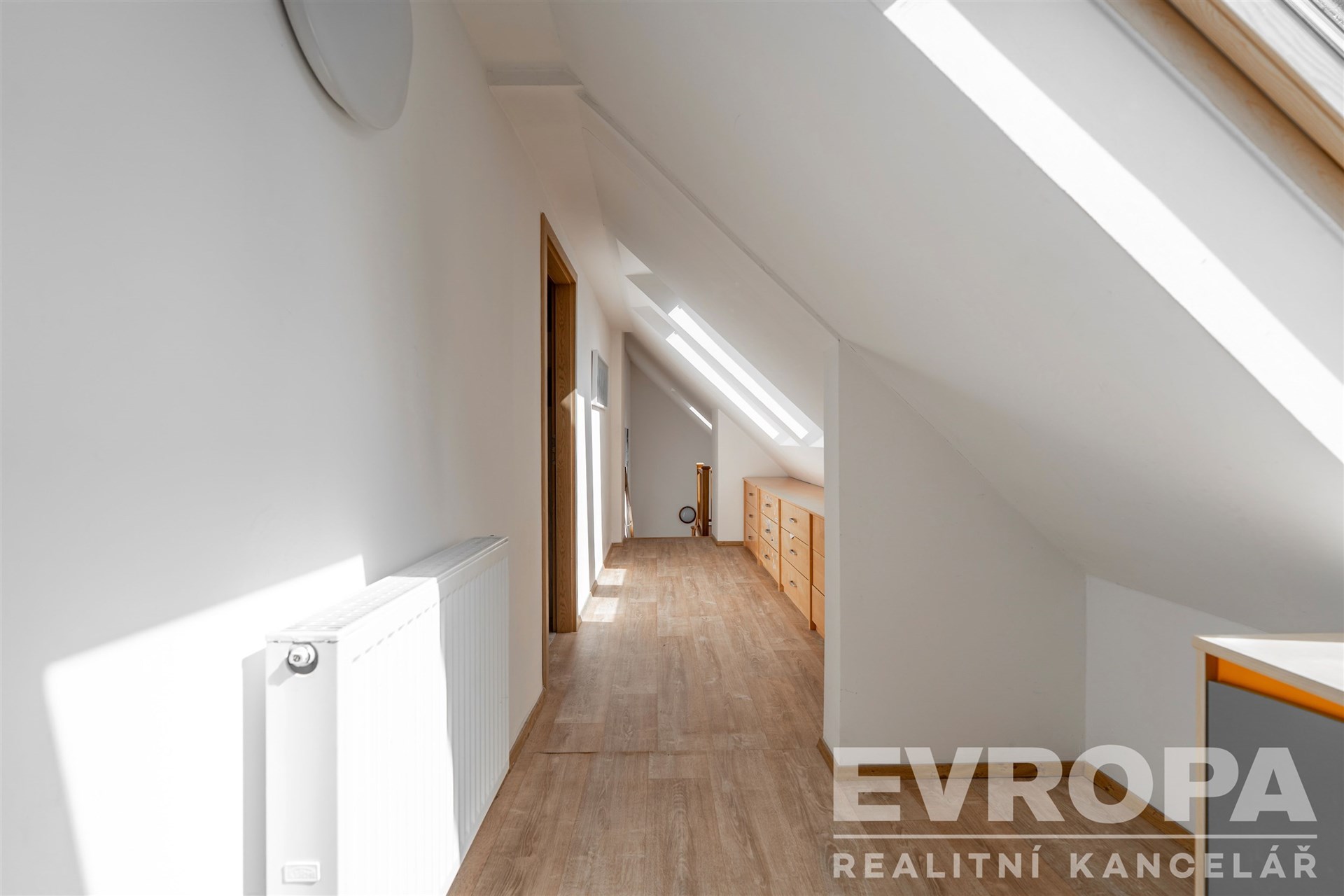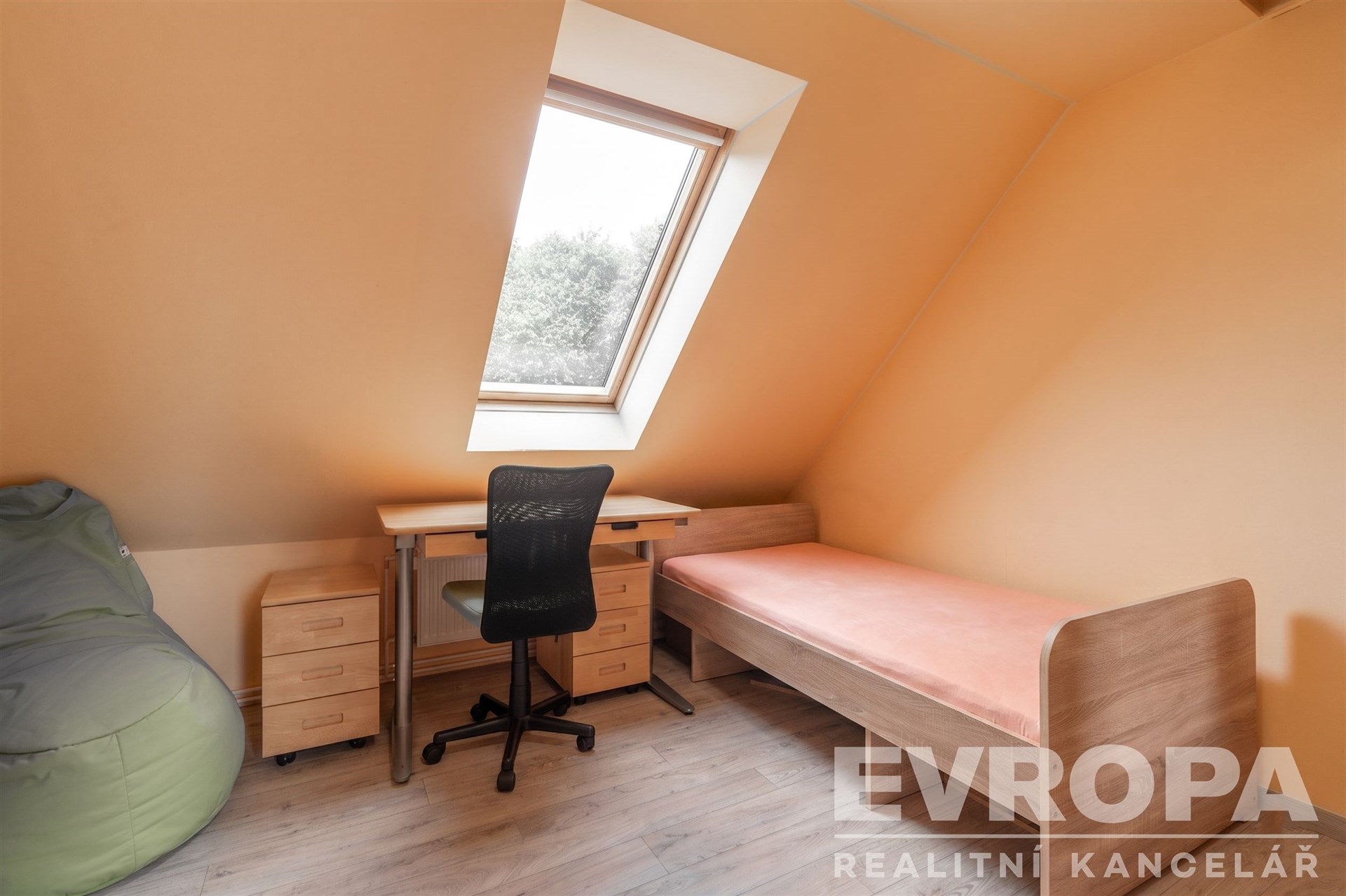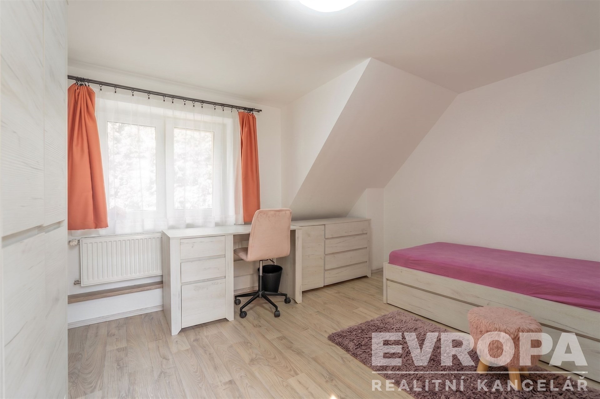 K prodeji nabízíme rodinný dům v ulici Bezručova, který prošel nákladnou rekonstrukcí až do dnešní podoby, v přízemí a podkroví je zhruba 180m2 bytové plochy pro celkem šest pokojů, kuchyň a další prostory. Přízemí je šikovně prosvětlené francouzskými okny na zahradu, obývací pokoj, ložnici a kuchyň doplňuje koupelna, toaleta, technická místnost, šatna a hala. Obývací pokoj je průchozí přímo na kryté venkovní posezení, orientované na jih do klidného vnitrobloku. V podkroví jsou čtyři dětské pokoje a vlastní koupelna s toaletou. Přípojka na obecní vodovod, kanalizaci, k dispozici samozřejmě elektřina a plyn. Ústřední topení na plynový kotel, ohřev vody zabezpečují dva bojlery. Internetové připojení: vysokorychlostní připojení přes optický kabel. Celkové měsíční náklady na bydlení jsou nyní průměrně 9.400 Kč pro čtyři osoby. V případě zájmu můžeme v domě ponechat téměř veškeré vybavení.