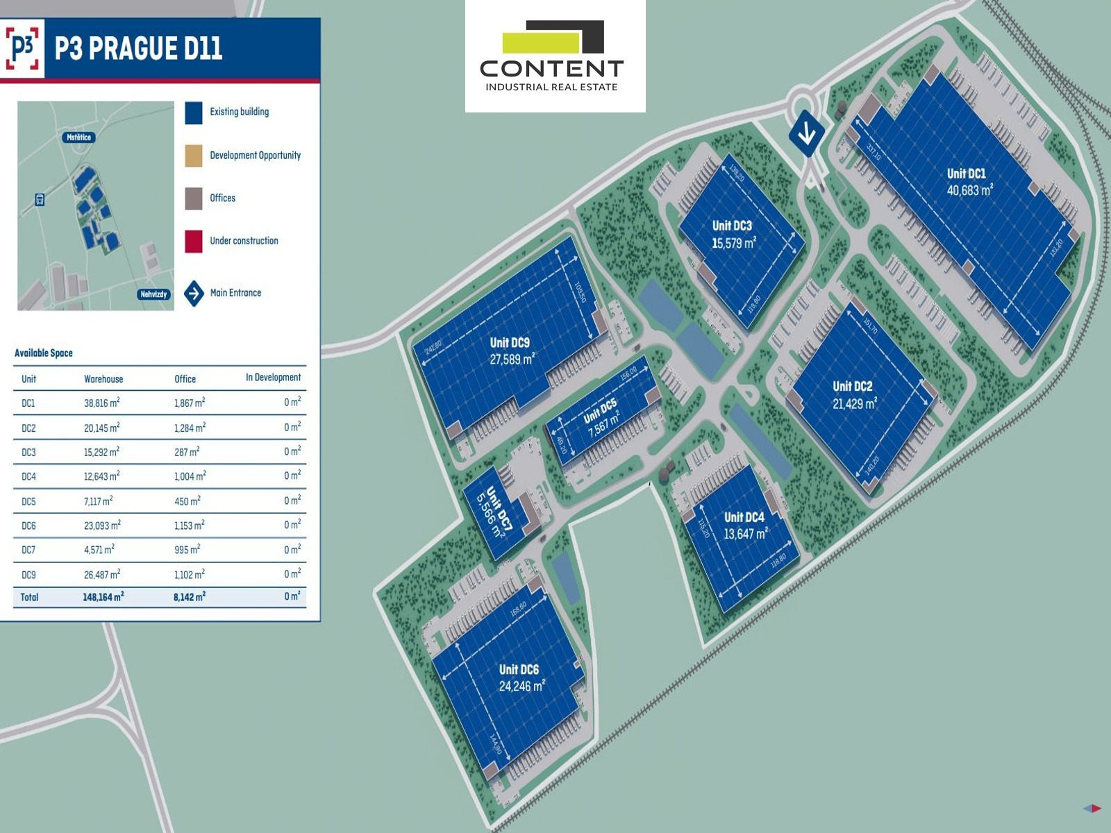 - existující industriální prostory 19747m², k dispozici dohodou (DC1),