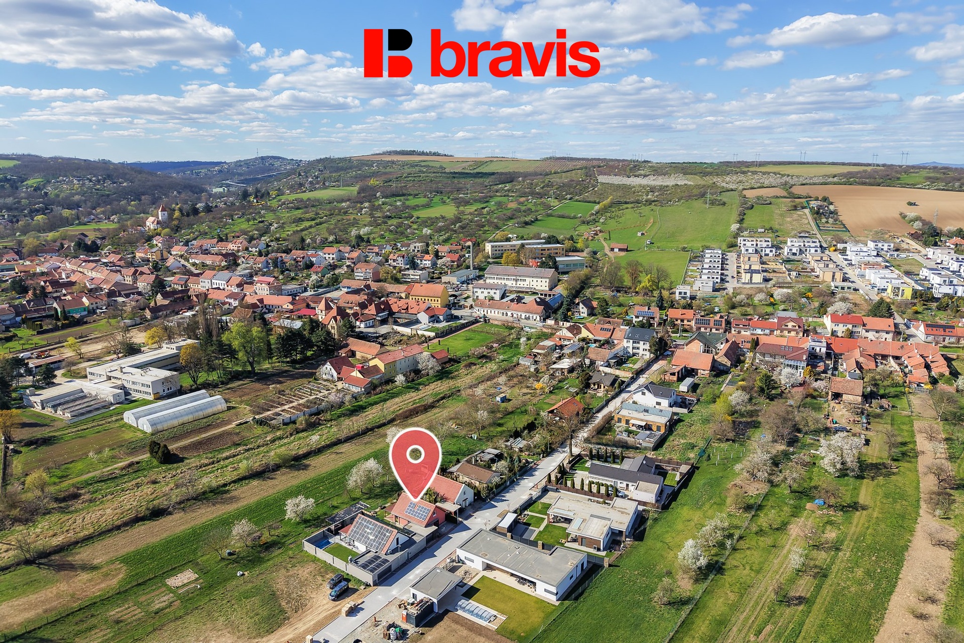 Dům se nachází na konci klidné ulice – žádný průjezdní provoz, žádný hluk. Pět minut chůzí od lesa. Obcí prochází tematická naučná cyklotrasa Přírodním parkem Bobrava. Na oblíbenou cyklotrasu Bobrava se lze napojit u soutoku Svratky se Svitavou – v blízkosti nákupního a zábavního centra Olympia, které je autem dostupné za pouhých 5 minut.