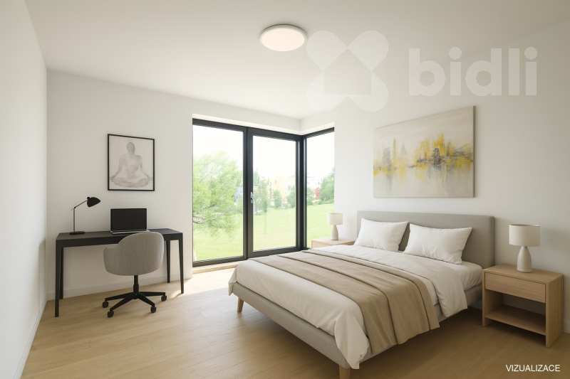 Dispozice 5+kk je navržena tak, aby interiér působil vzdušně, funkčně a příjemně.