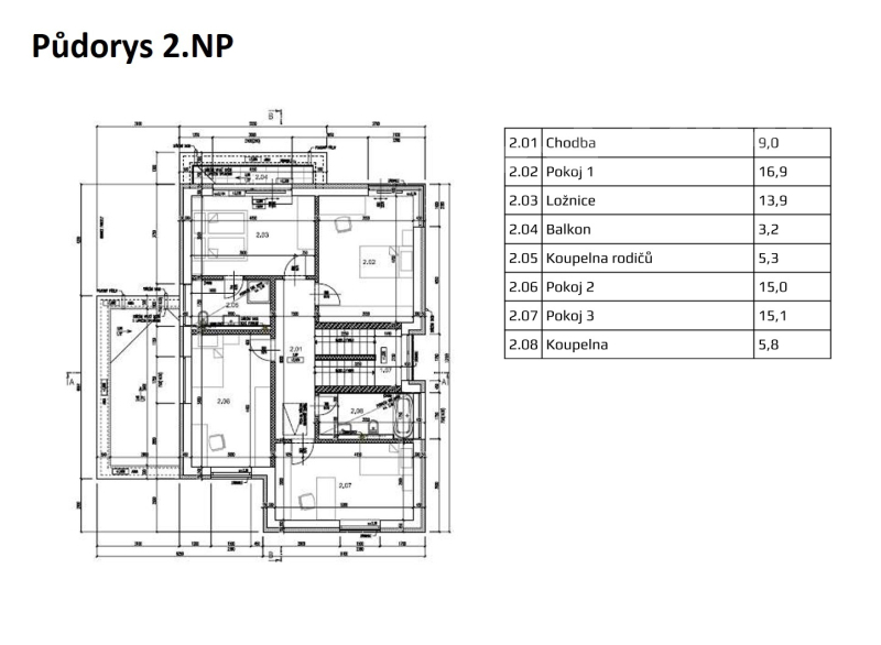 V patře se nachází tři prostorné pokoje, hlavní ložnice, dvě koupelny a balkon s krásnými výhledy do okolí. Velká okna propouštějí maximum denního světla a podtrhují atmosféru moderního, klidného bydlení.