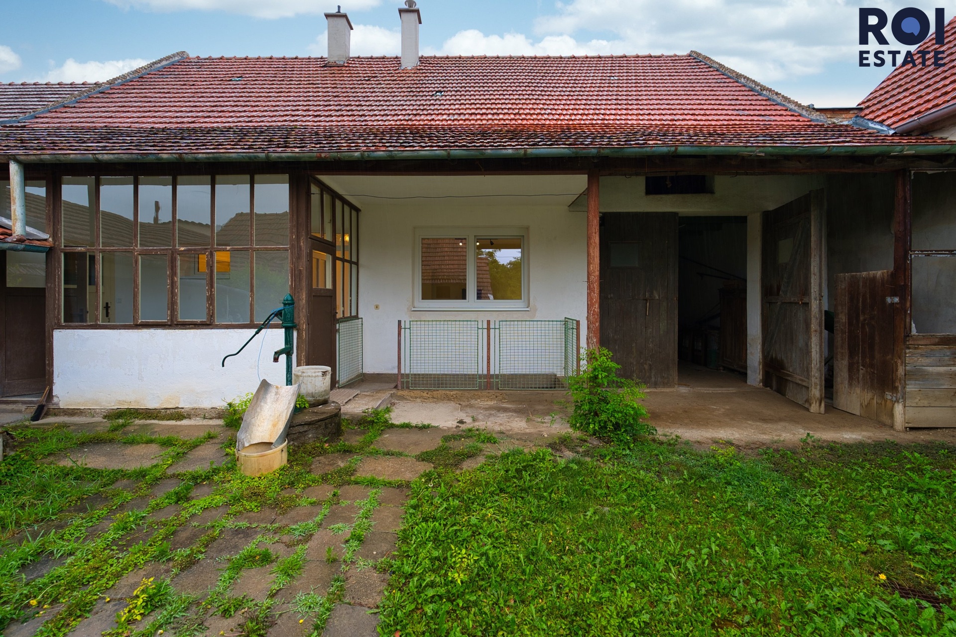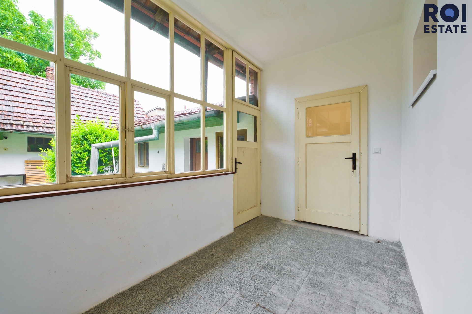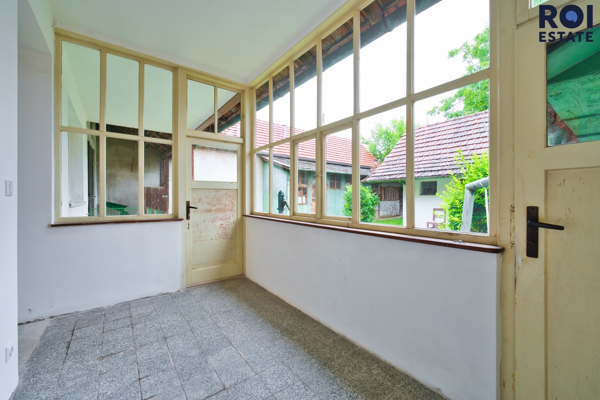 Z interiéru se vchází na zasklenou verandu, ideální třeba pro ranní kávu. Odtud je přístupná i komora, kterou můžete využít jako praktickou spíž. Následuje dvůr, kde se nachází několik dalších místností v původním stavu – přímo vybízejí k tomu, aby se z nich stala letní kuchyně, dílna, prádelna nebo prostor pro tvoření. Dům je částečně posklepený.