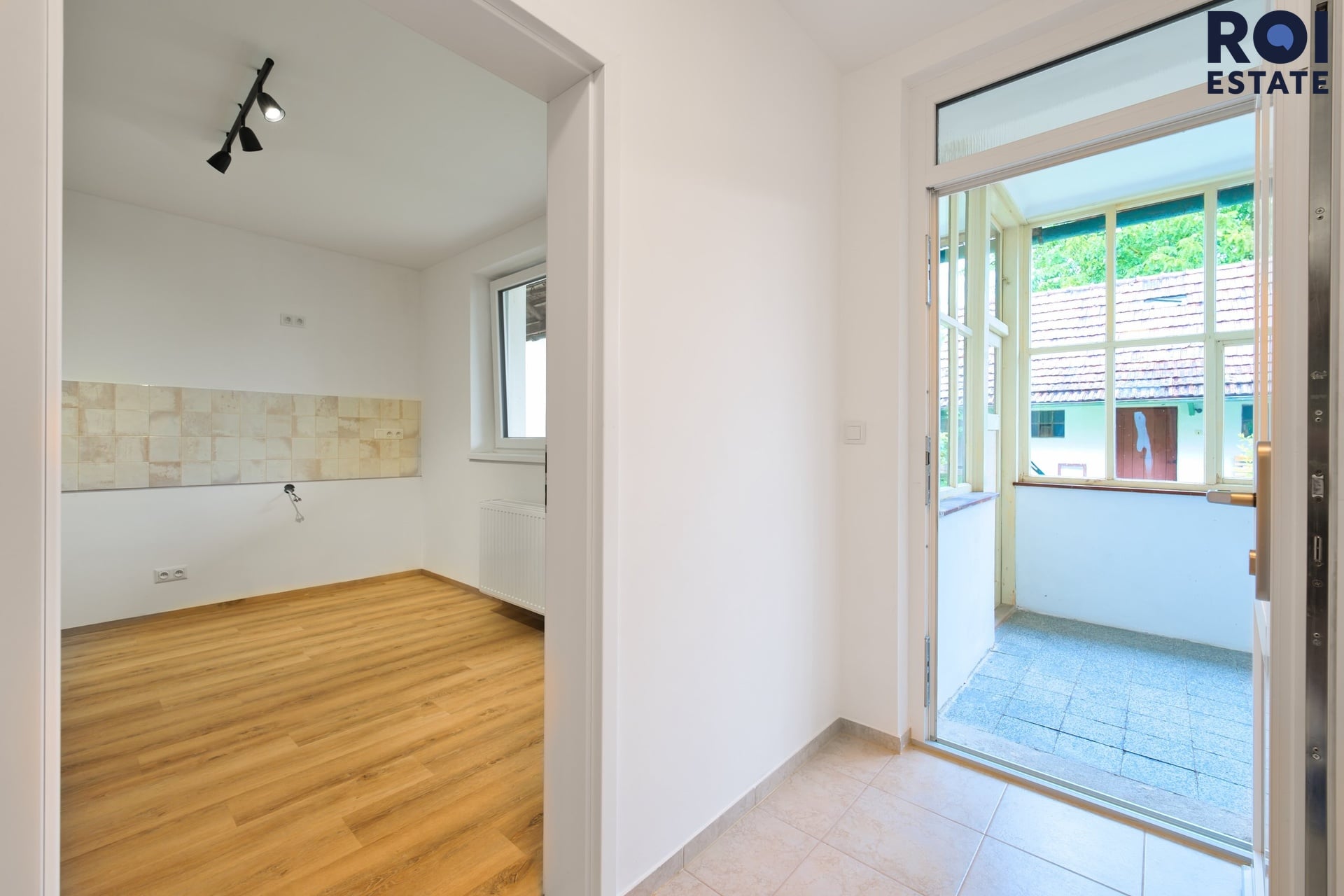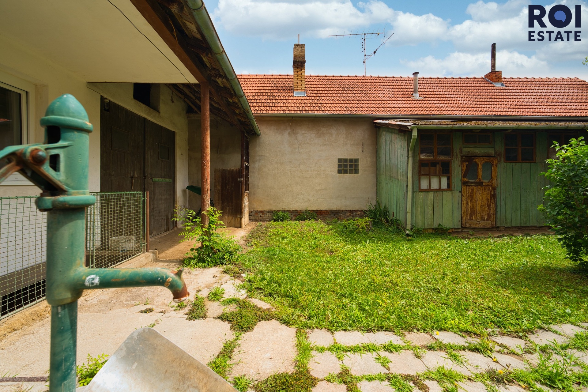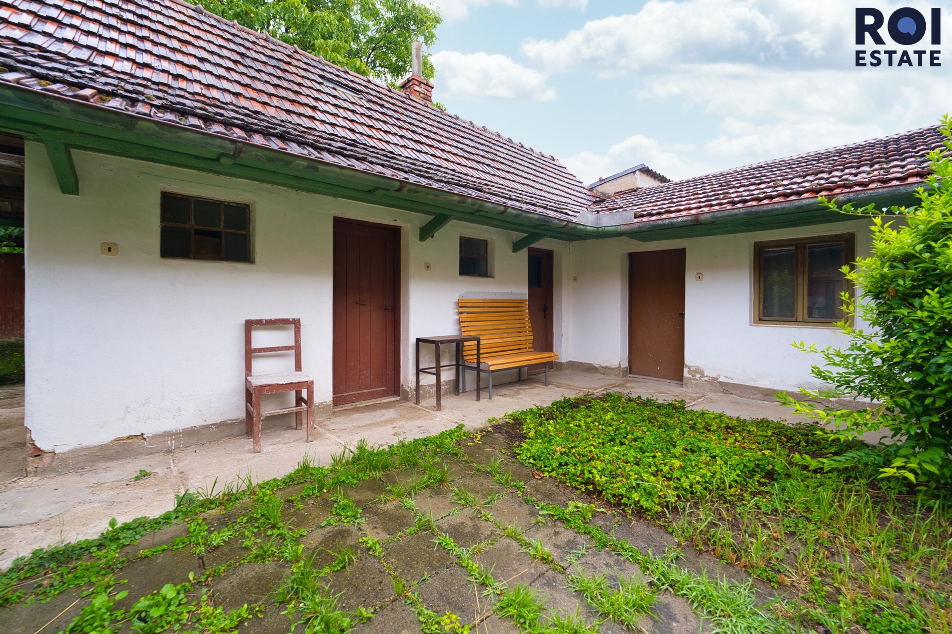 Z interiéru se vchází na zasklenou verandu, ideální třeba pro ranní kávu. Odtud je přístupná i komora, kterou můžete využít jako praktickou spíž. Následuje dvůr, kde se nachází několik dalších místností v původním stavu – přímo vybízejí k tomu, aby se z nich stala letní kuchyně, dílna, prádelna nebo prostor pro tvoření. Dům je částečně posklepený.