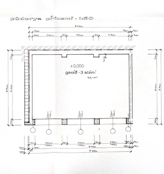 K domu patří trojgaráž o podlahové ploše 65m2, postavená hned u silnice. Zvenku jsou to tři samostatné vjezdy, ale uvnitř je to jeden celek, kdy v jedné části je i zdviž pro opravování aut. Zároveň další možnost parkování je vedle domu pod přístřeškem, další varianta je i v garáži domu, poslední možnost je i parkování přímo před domem.