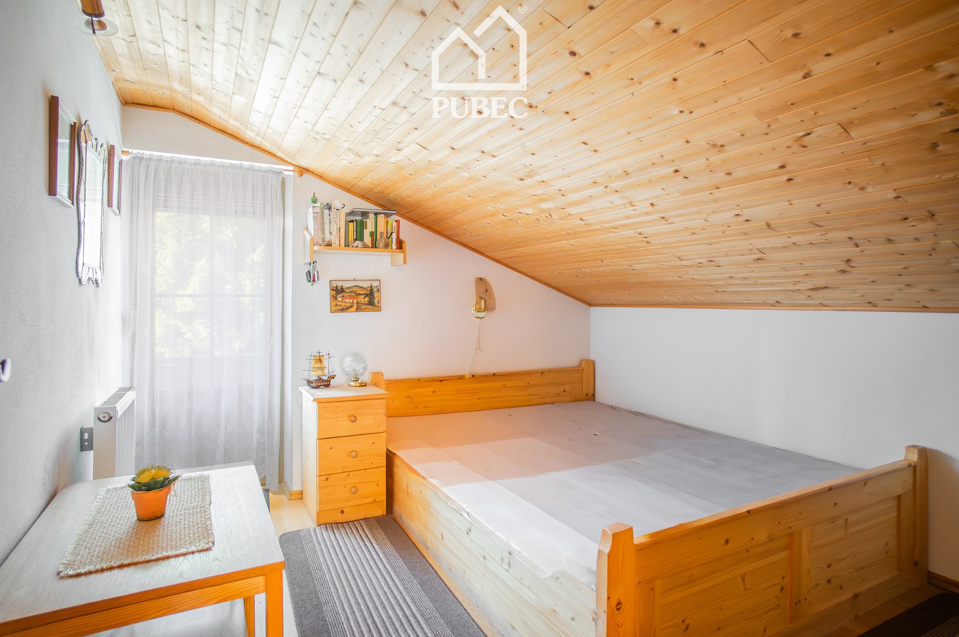 V patře najdete dva útulné pokoje, koupelnu a praktické úložné prostory nejen v šikminách střechy.