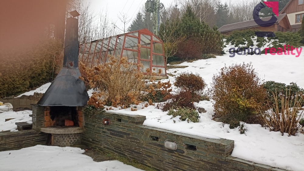 Prodej patrové a podsklepené chaty bez č.p./č.e. na krásném a klidném místě s výhledem na Železný Brod. Chata se prodává včetně vybavení a je připravena na rekreační sezonu. Součástí prodeje je pěstovaná zahrada (564 m2) se skleníkem, koutem s venkovním krbem a zázemím pro malý nadzemní bazén. Současnou zastavitelnost chaty o rozměru 4mx5,5m lze rozšířit až na cca 80 m2. Dřevěnou přístavbou byla vybudována malá koupelna s umyvadlem, sprchovým koutem a toaletou.