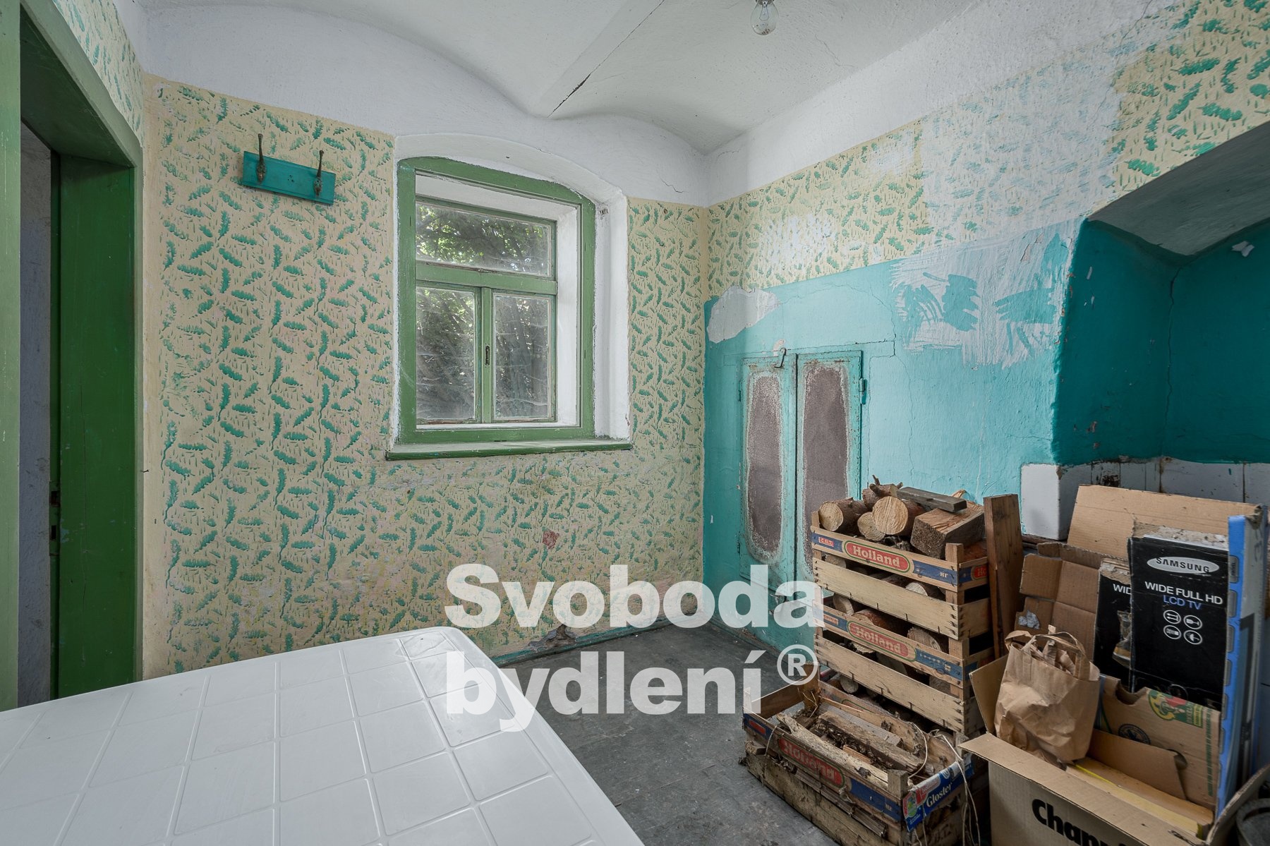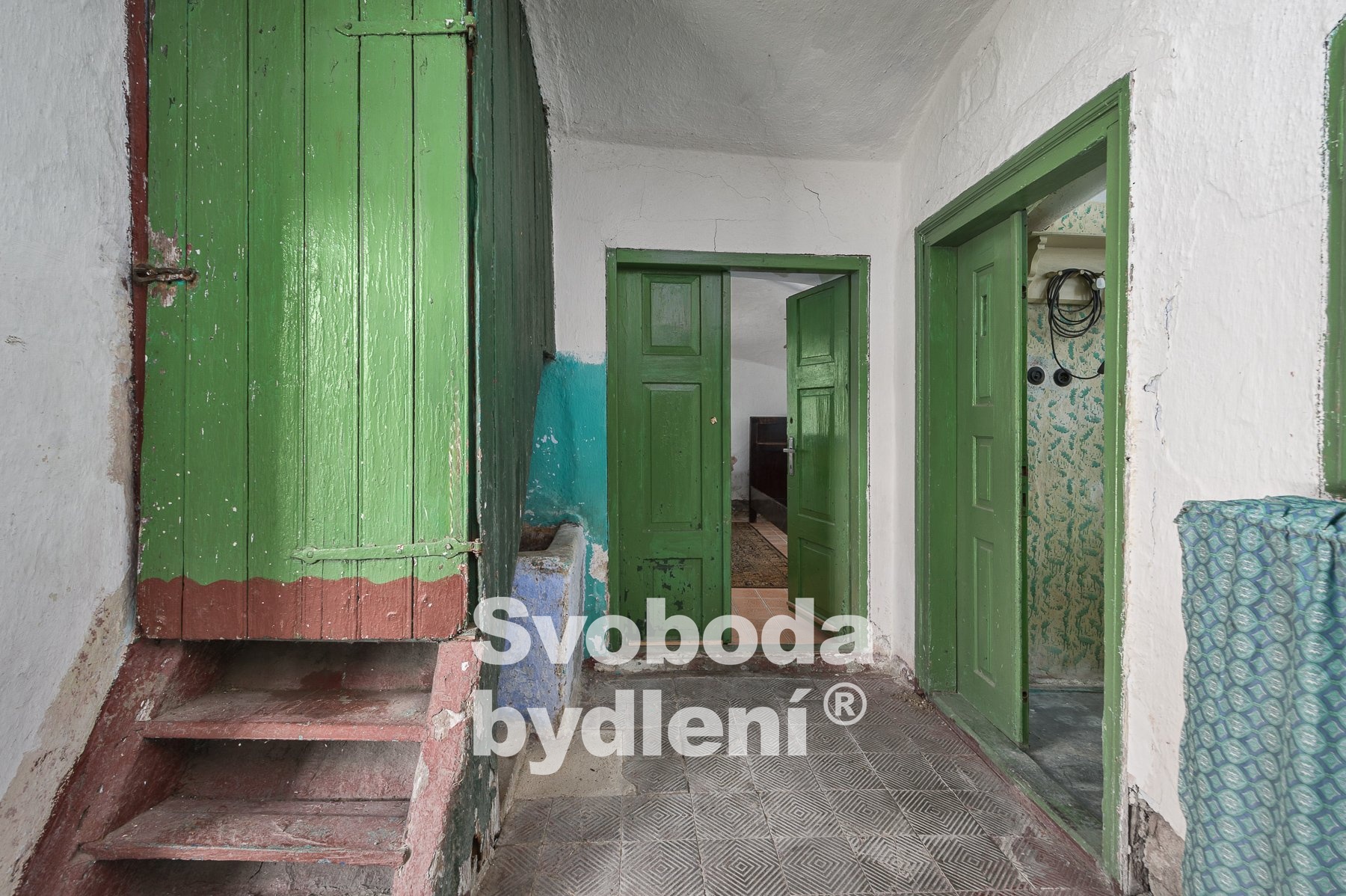 Vlevo od vstupu do vejminku se nachází dveře do bývalého chléva ( cca 15 m2). Poslední dveře vedou do bývalé dílny (cca 90 m2, výška stropu cca 2,5m), ze které je vstup do zadní místnosti (cca 13 m2).